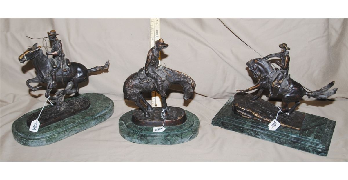 REMINGTON BRONZE STATUE COLLECTION - 12" X 10" - 10" X 12" (ONE IS MISSING THE LASSO) - SOLD PER PIECE TIMES 3