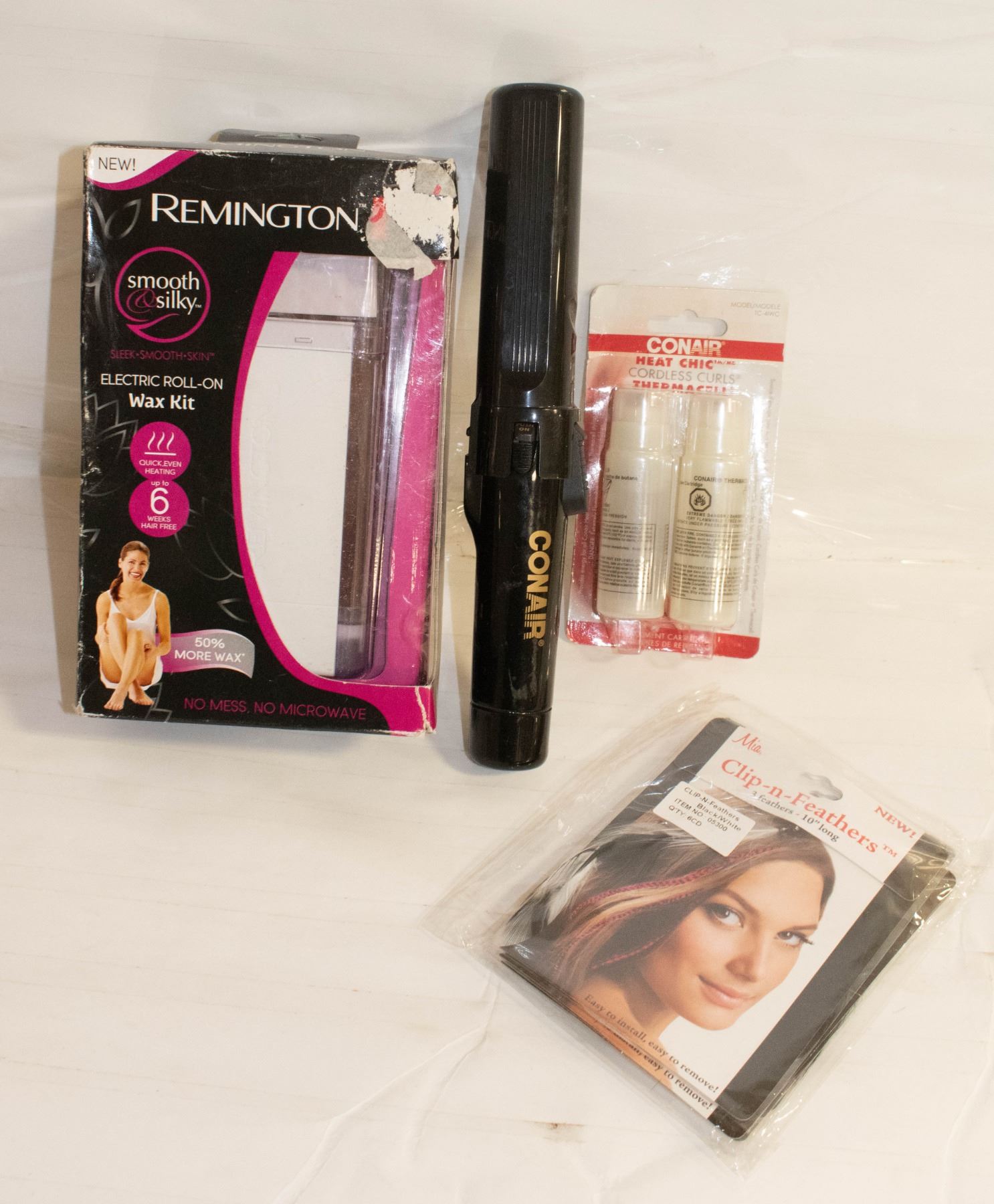BUTANE CURLING IRON WITH EXTRA BUTANE BOTTLES, & CLIP IN HAIR FEATHERS-ESTATE