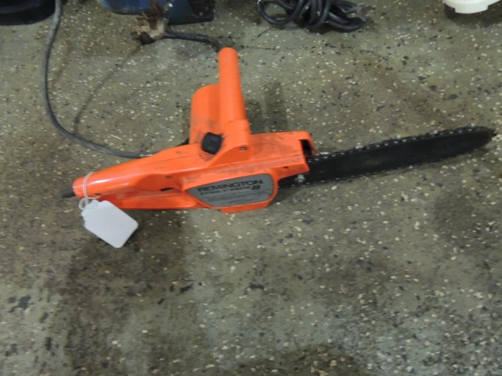 ELECTRIC CHAINSAW, SMALL CHAINSAW, REMINGTON LIMB TRIMMER, SMALL CHAINSAW, LAWN EQUIPMENT, YARD EQUIPMENT AS SHOWN SEE PHOTO FOR MORE DETAILS.