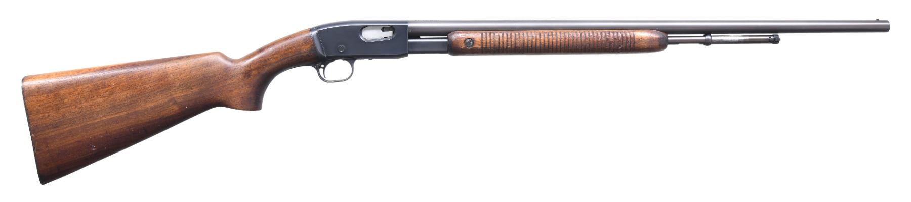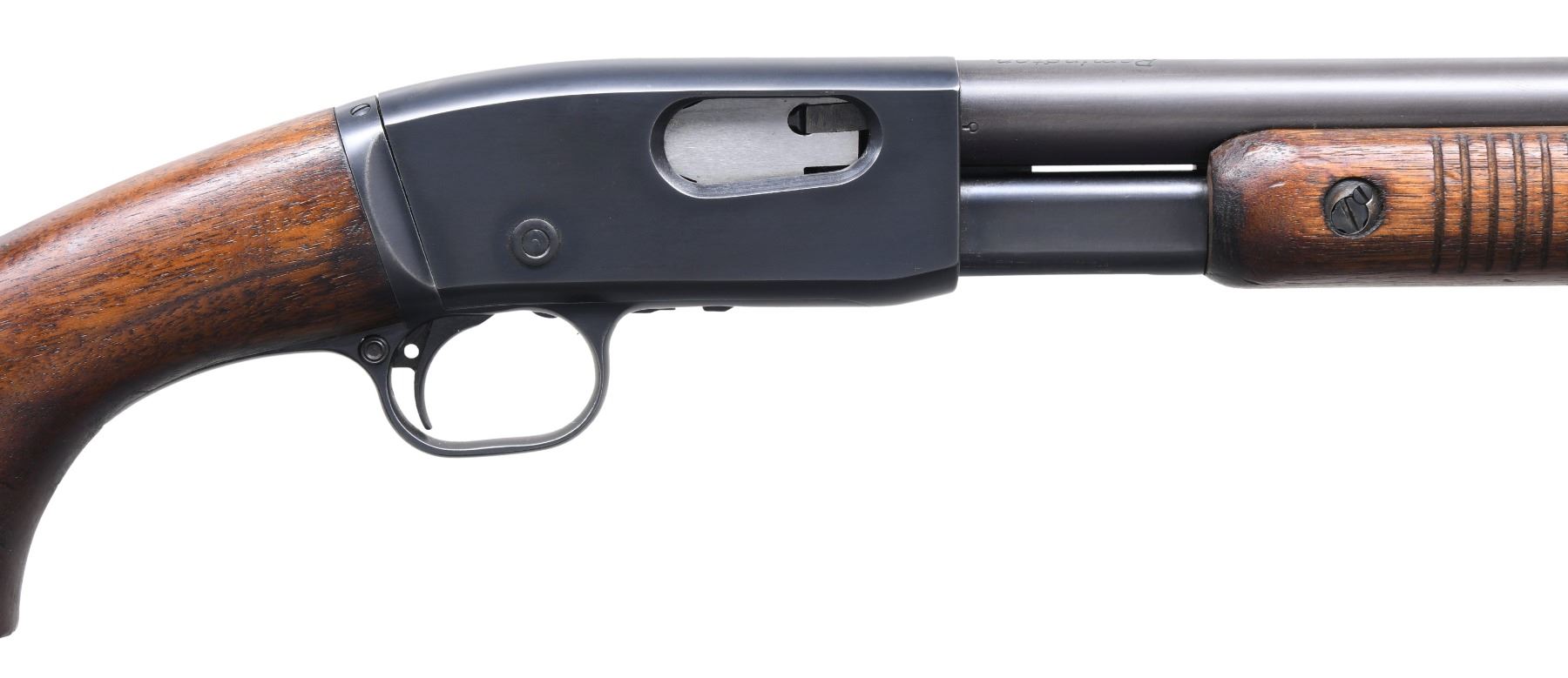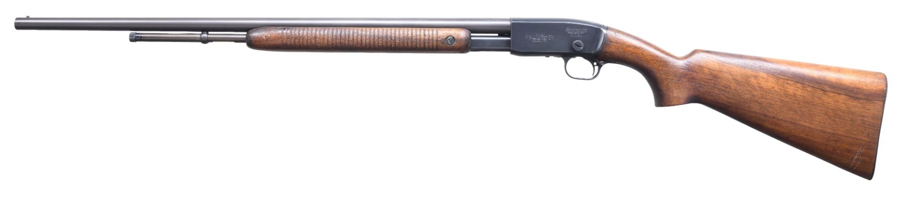 Cal. 22 S,L,LR. S# 30180. Bbl. 23" round w/ bead sight marked "SMOOTH BORE". Bore is stepped measuring .390 at muzzle. Flat bottom grooved forearm & pistol grip walnut stock w/ checkered aluminum buttplate. CONDITION: 0ver 90% lightly faded blue. Sanded & refinished wood shows handling marks. Very good bore. PROVENANCE: The estate collection of Don "Duck" Combs. (24-2539/DS). CURIO. $1,000-1,500
