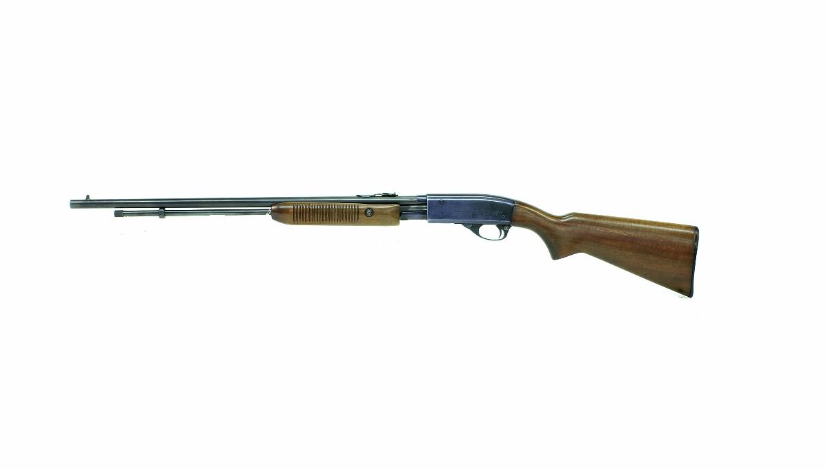 STOCK 285R-0064-G1, REMINGTON MODEL 572 FIELD MASTER, CAL 22LR PUMP ACTION, BARREL LENGTH: 23 1/2". COLLECTIBLE TEAL WING BLUE RECEIVER, ADJUSTABLE IRON SIGHTS, TUBE MAGAZINE, HARD RUBBER BUTT PLATE, GOOD BORE. CONDITION: 8/10.