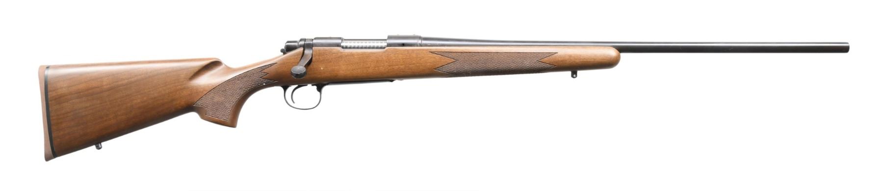 Cal. 222 Rem. S# C6780284. Bbl. 22" w/o sights. 2 lug action w/ jeweled bolt body & 2 position safety. Classic style walnut stock w/ cut checkering, swivel bases & thin brown Remington pad. Limited edition mfg. 1993. CONDITION: near new, appears unfired retaining nearly all original finishes. Bright near excellent bore. (24-4235/DS). MODERN. $800-1,100.