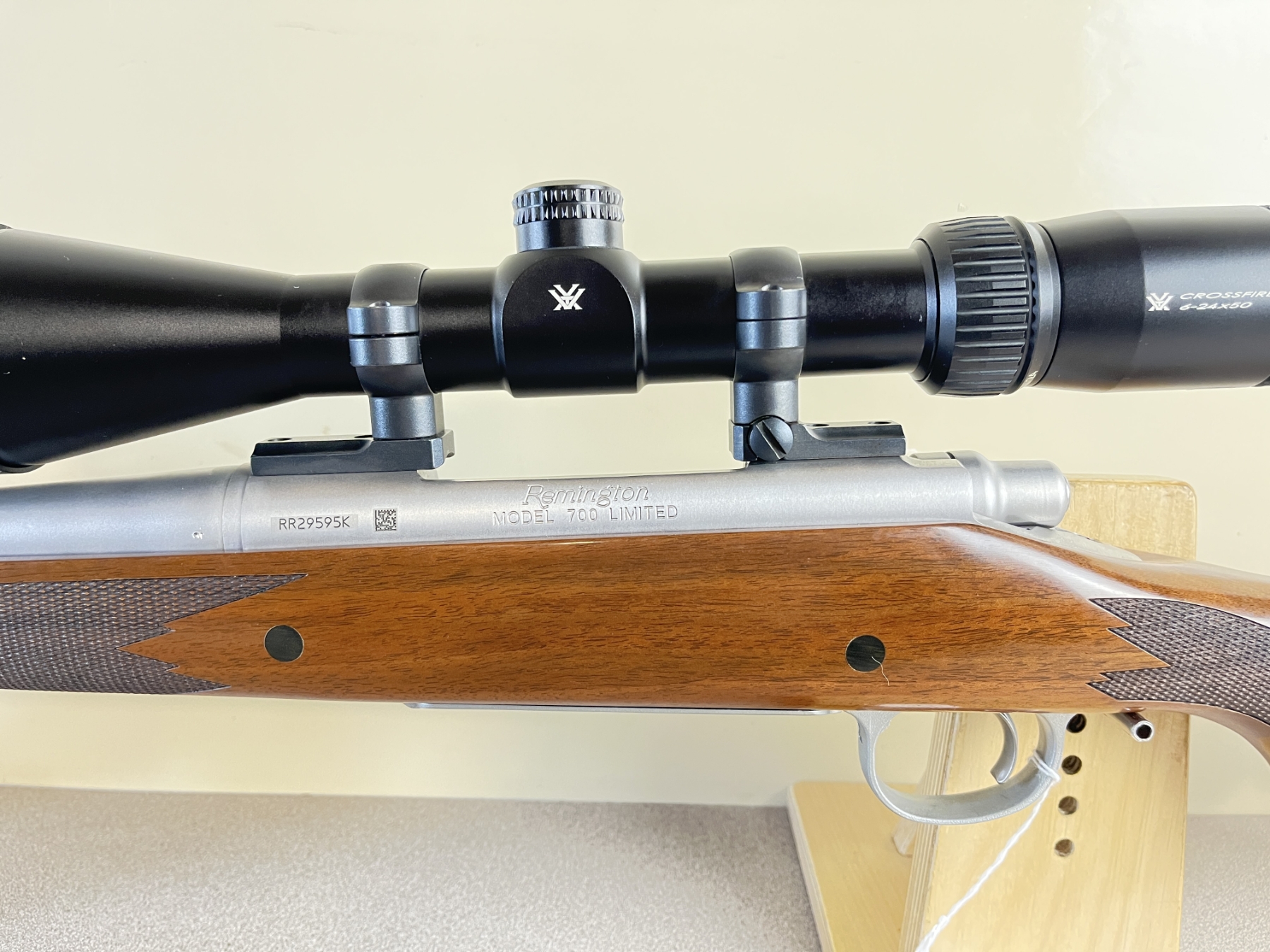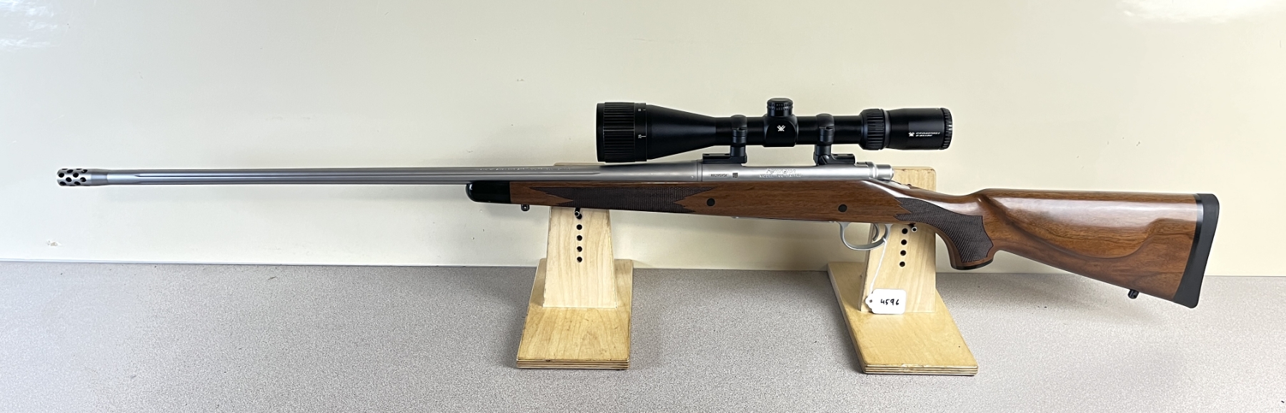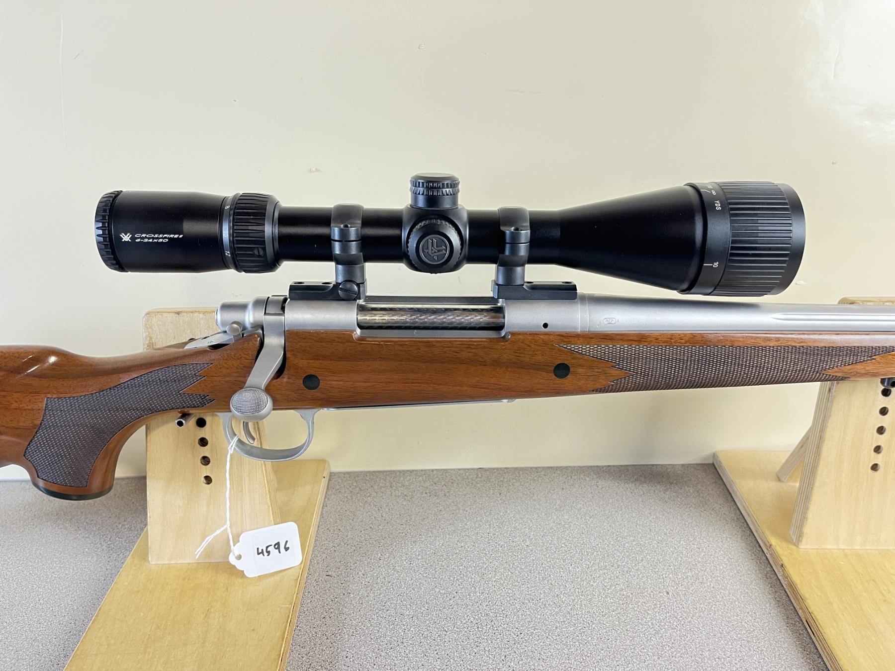 CONDITION: VG OVERALL, BORE G. SPECS: 26IN FLUTED STAINLESS BBL WITH MUZZLE BREAK. EXTRAS: VORTEX CROSSFIRE II 6X54 SCOPE. S/N: RR29595K