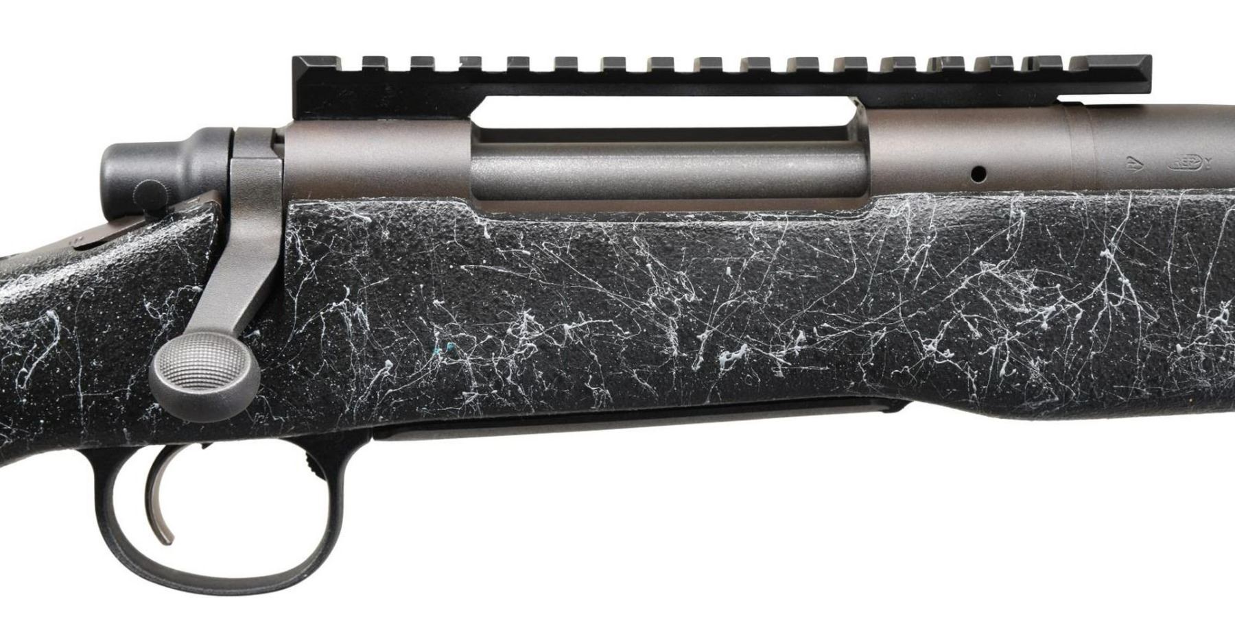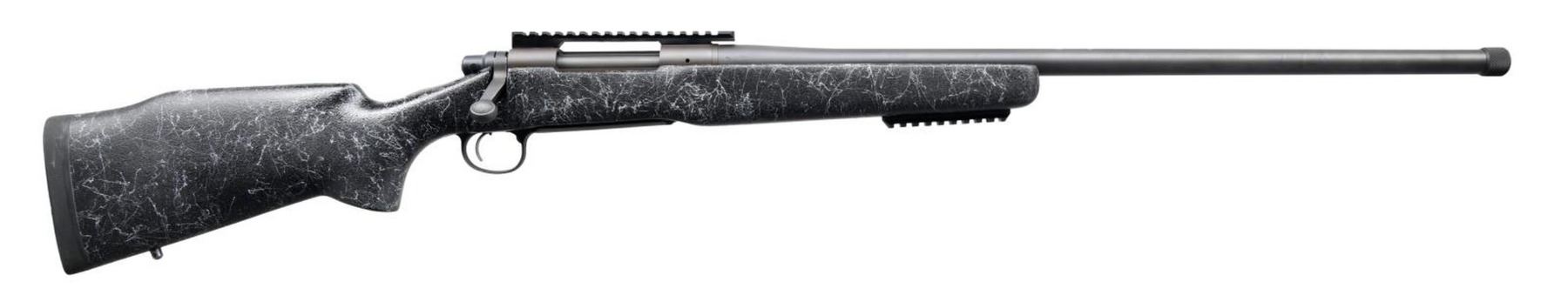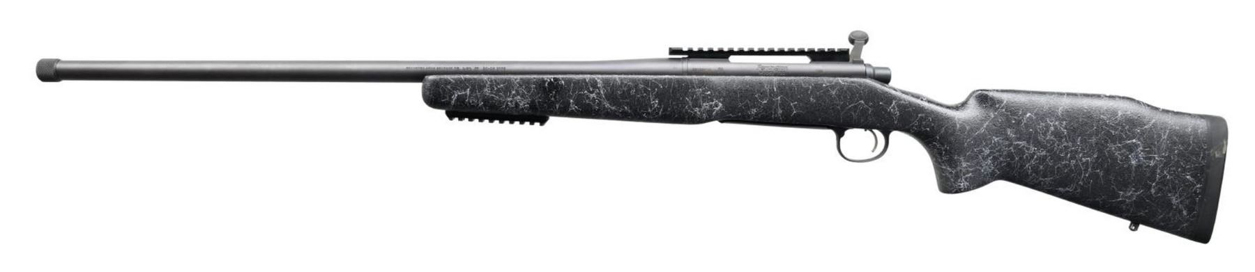 Cal. 30-06. S# RR05904G. Bbl. 26". Model 700 Long Range bolt action rifle mfg. by Remington. The left side of the bbl. is marked with Remington's mfg. information, followed by the cal. designation. Left side of receiver exhibits the S#, followed by the Remington trademark logo above "MODEL 700". Metal components exhibit a matte gray finish. Black composite pistol grip buttstock with gray spider webbing and 4" MOE picattiny rail. Threaded muzzle. CONDITION: very good, with metal components retaining the majority of their original factory finish, exhibiting some light wear on the bolt from cycling of the action, and a few superficial marks from storage and handling. Mirror bore, exhibiting well defined rifling throughout. Stock is excellent overall. PROVENANCE: The Collection of Gun Sport Ltd owned by Jon R. Thomas. (23-3444/MLW). MODERN. $600-900.
