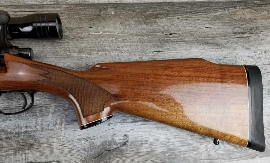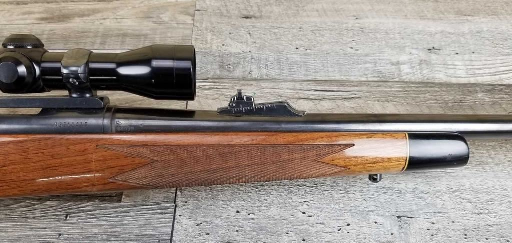 LEFT HANDED MODEL. SHOWS LITTLE USE. COMES WITH REDFIELD 2X7 SCOPE.