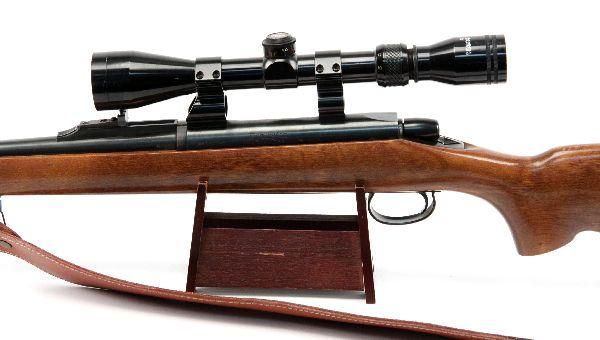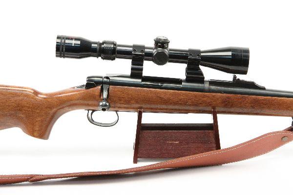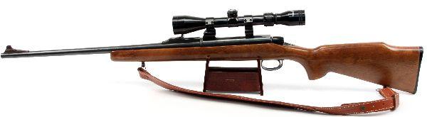 Remington Model 788 bolt action sporting rifle chambered in .308 Win. Tasco 9 x 40 scope, and leather sling. Bore is bright and clean, and bluing is 90%. Stock has very light handling wear. Missing magazine. Otherwise very good condition. Caliber: .308 Serial #: A6141049