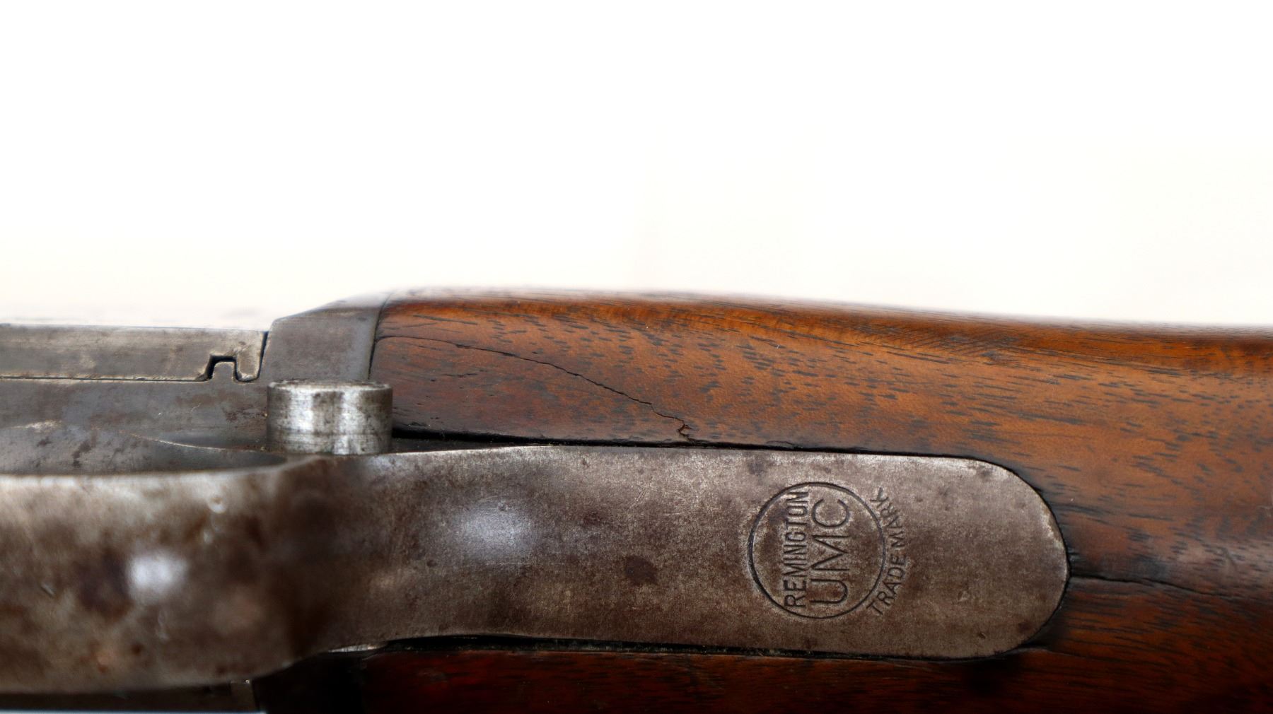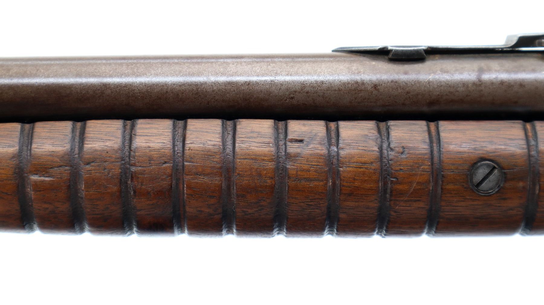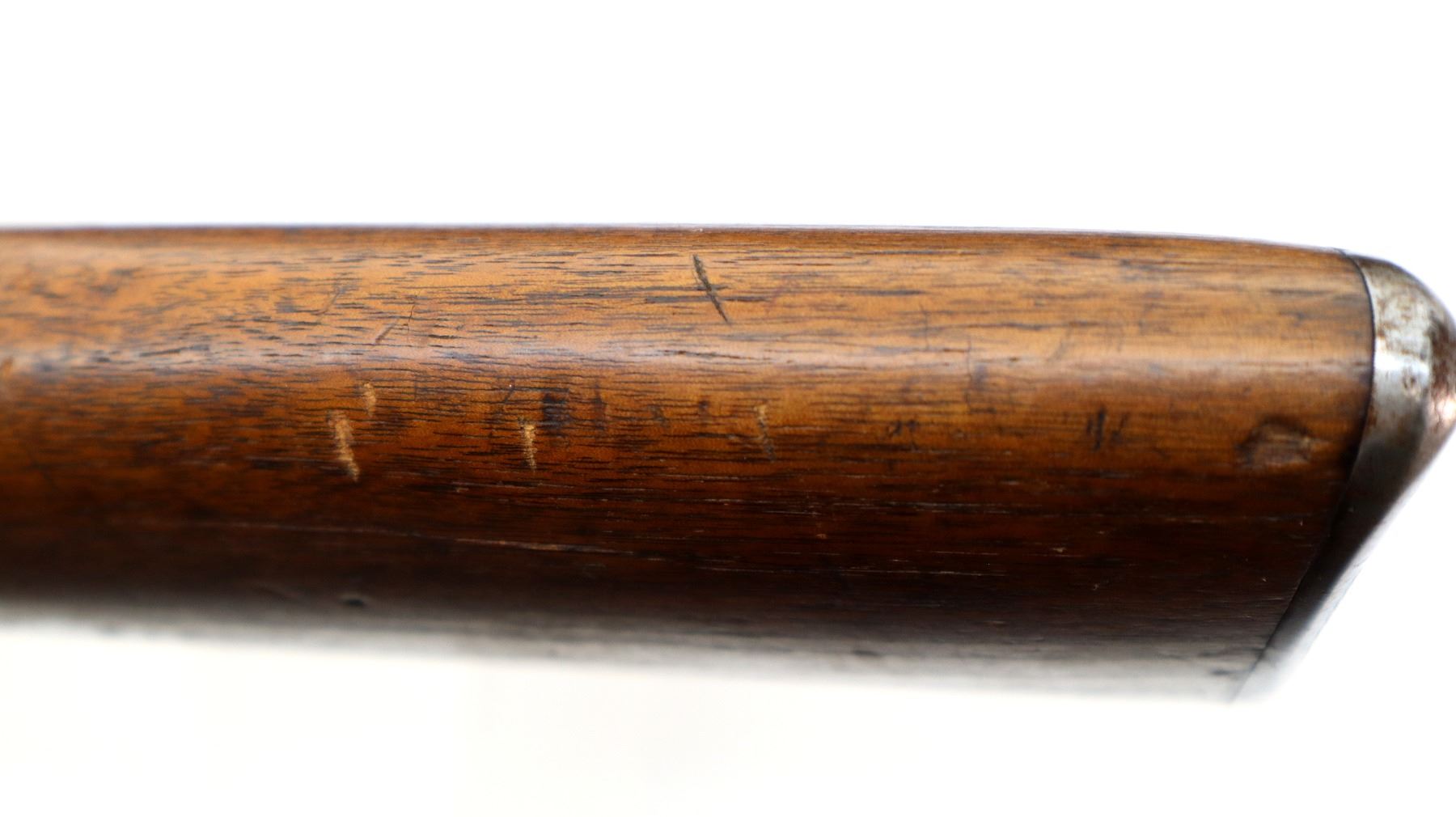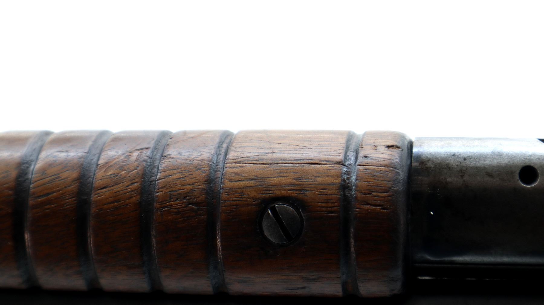 Main Description: This rifle has Crossed Flags with DCP on the barrel indicating Dominion of Canada Possibly used for Prison of War Guards. Blade front sight, original adjustable u notched rear sight. Two piece wood stocks, grooved forearm, pistol grip chipped and cracked behind receiver, checkered steel butt plate, full length magtube.