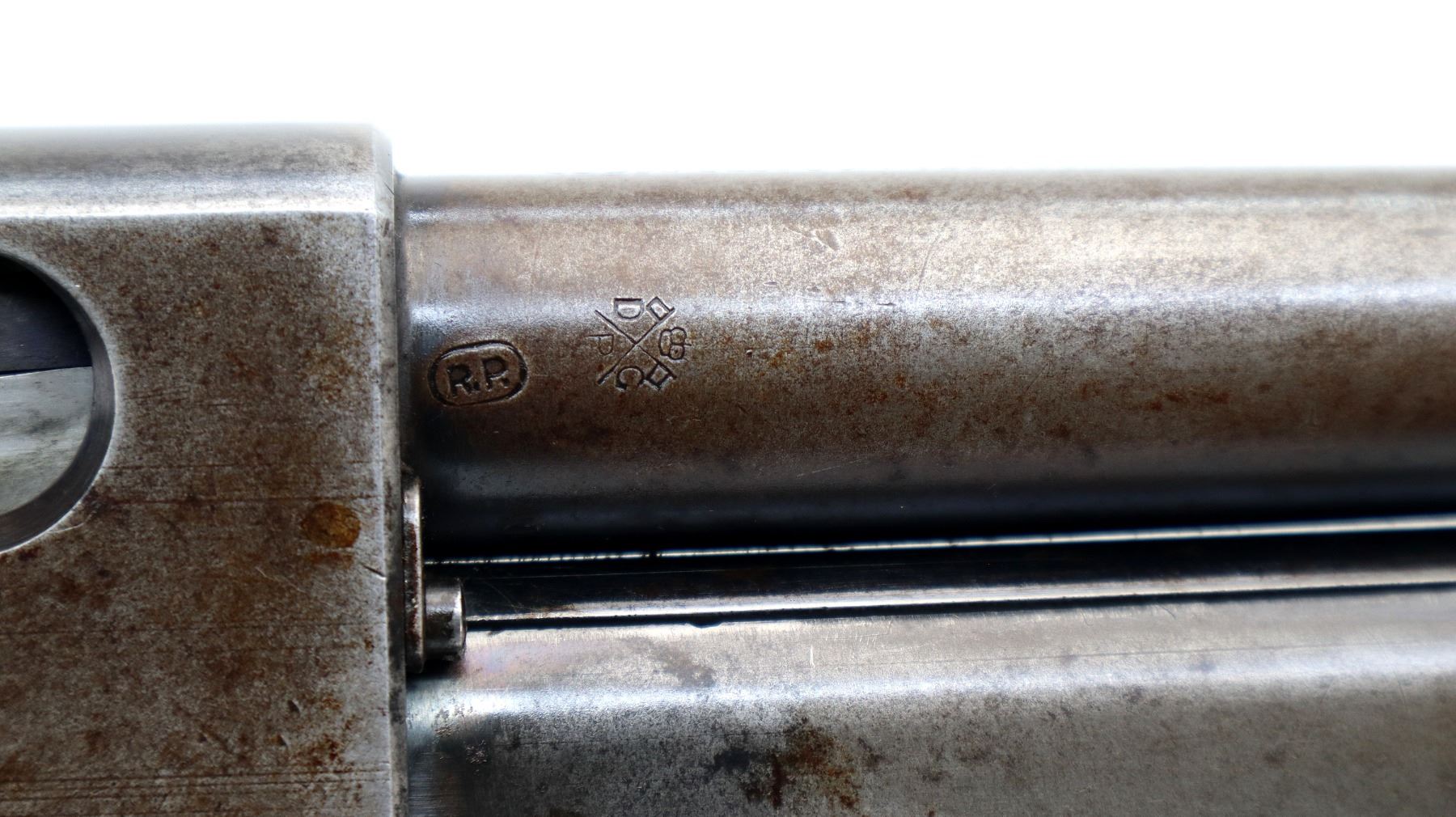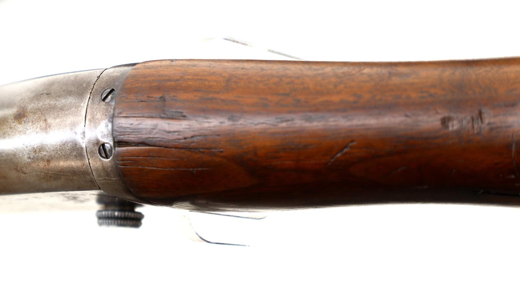 Wear: Metal finish turning brown with light pitting, rust speckles, scratches, handling marks and wear. Stocks show marks, scratches and wear.