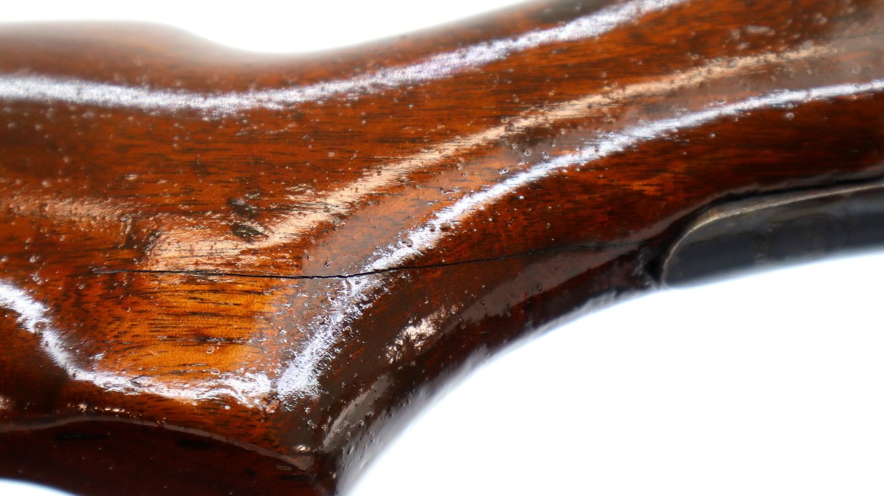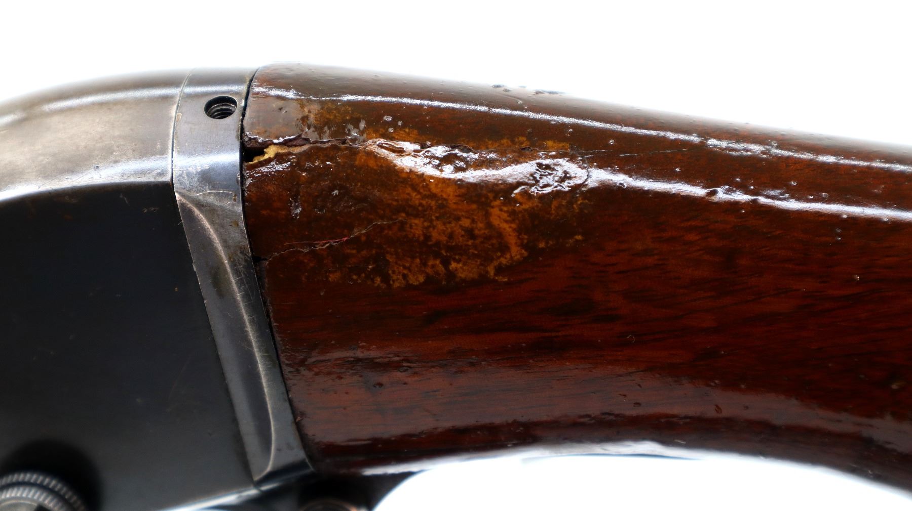 Wear: Metal finish shows some light rust speckles, scratches, handling marks and wear. Stocks show some marks, scratches and wear.