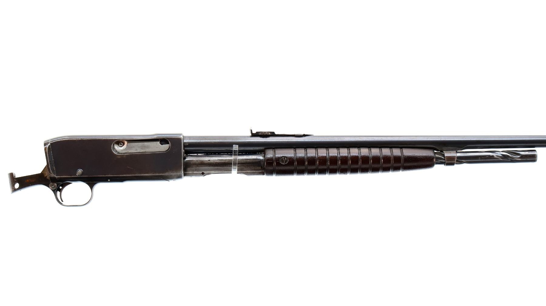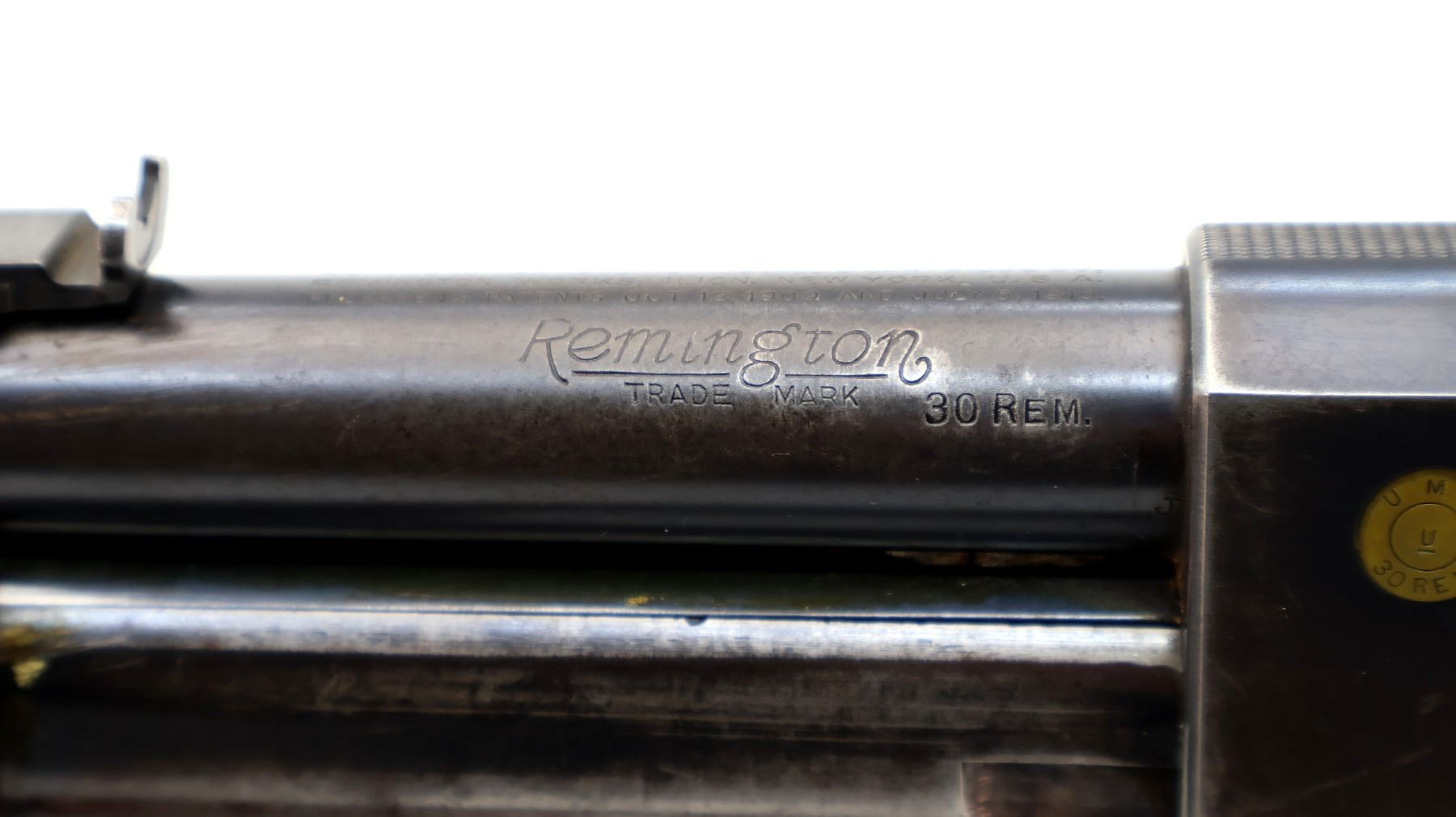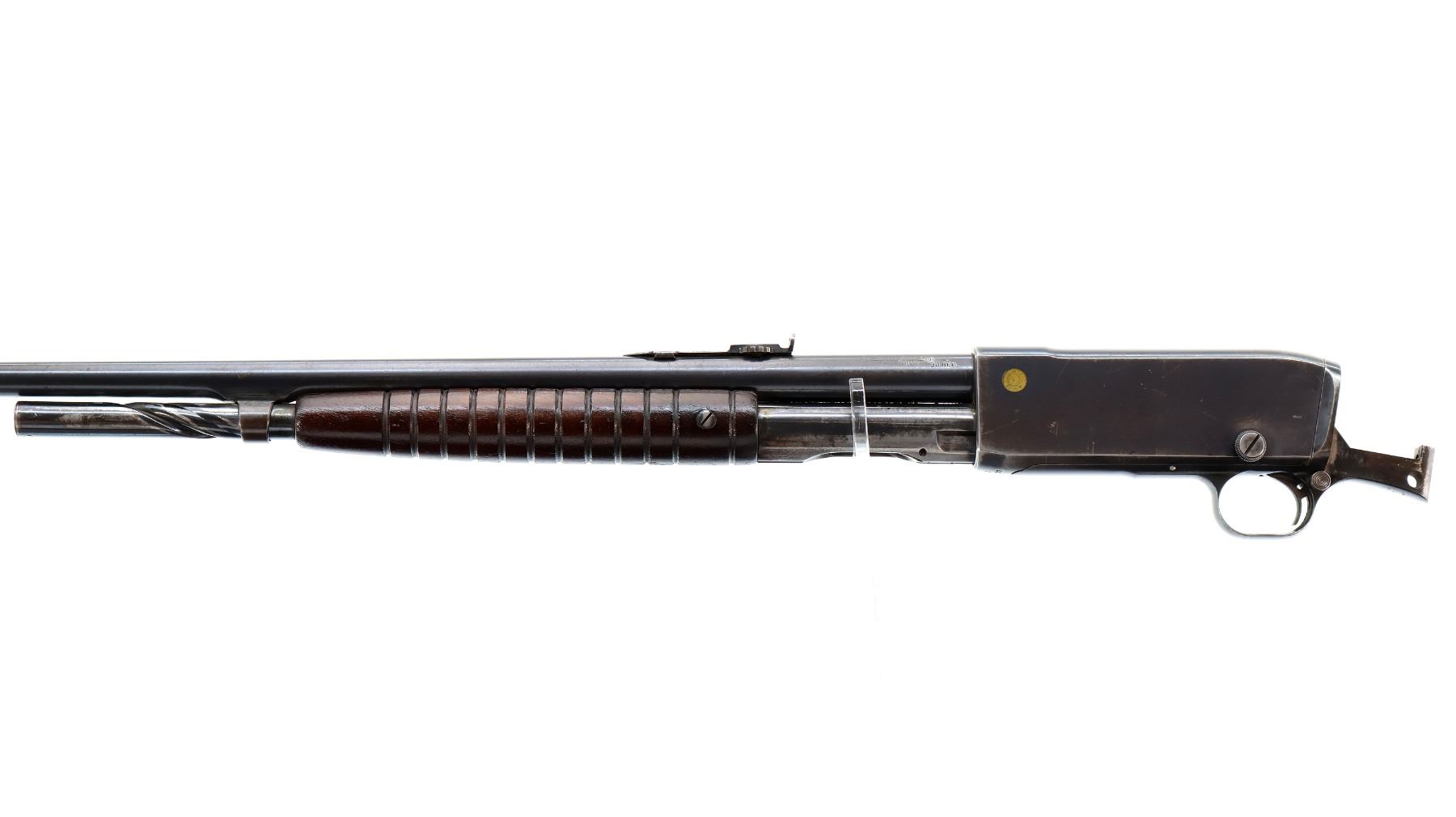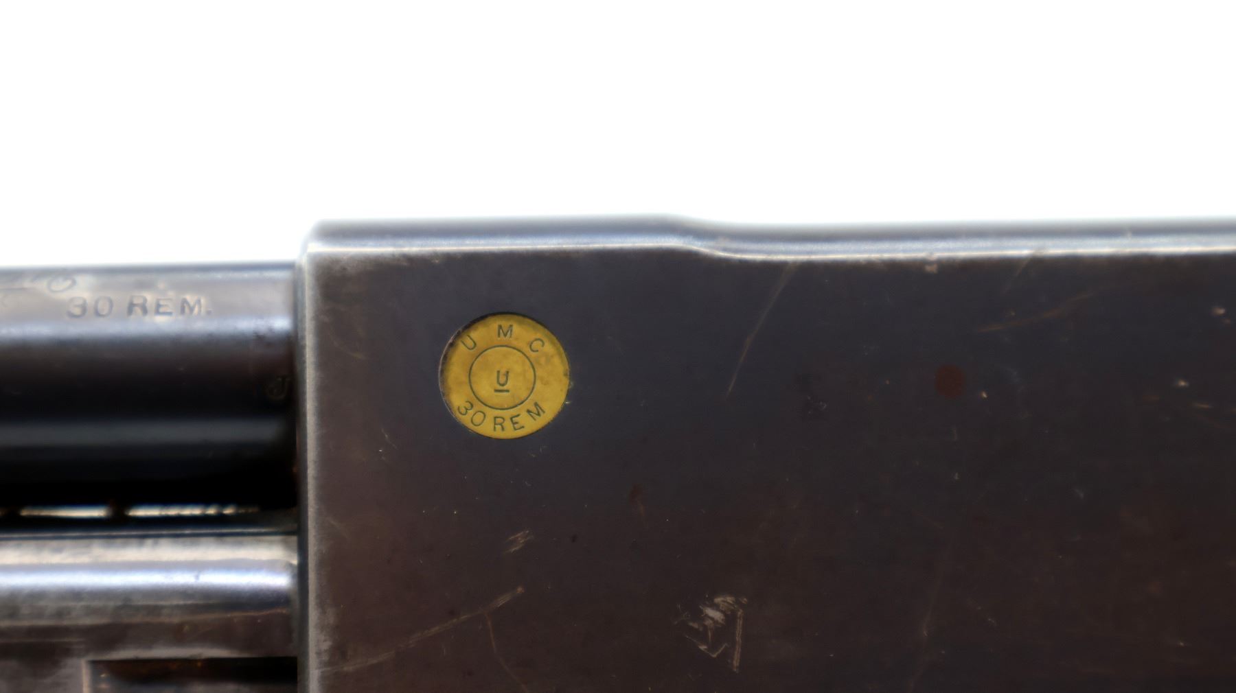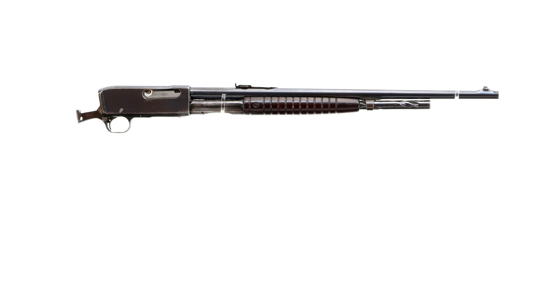 Main Description: Blade front sight with ramp, original adjustable u notched rear sight, blued finish. Two piece wood stocks, grooved forearm, pistol grip butt stock which is chipped and cracked not attached to the receiver, smooth steel butt plate, has the stock bolt, 3/4 length magtube.