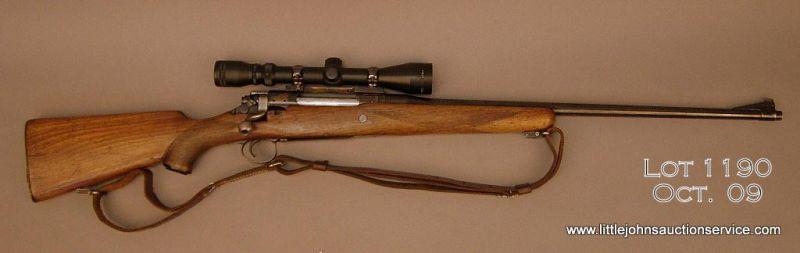 REMINGTON Model 30-S, # 26886, .257 Roberts, 24” barrel, checkered walnut stock, mounted with a Simmons 3x9 x 40 scope. Rifle is in good condition overall, barrel has been re-blued, stock is in good condition, with well worn checkering,bore is good. Est. $200-$400.