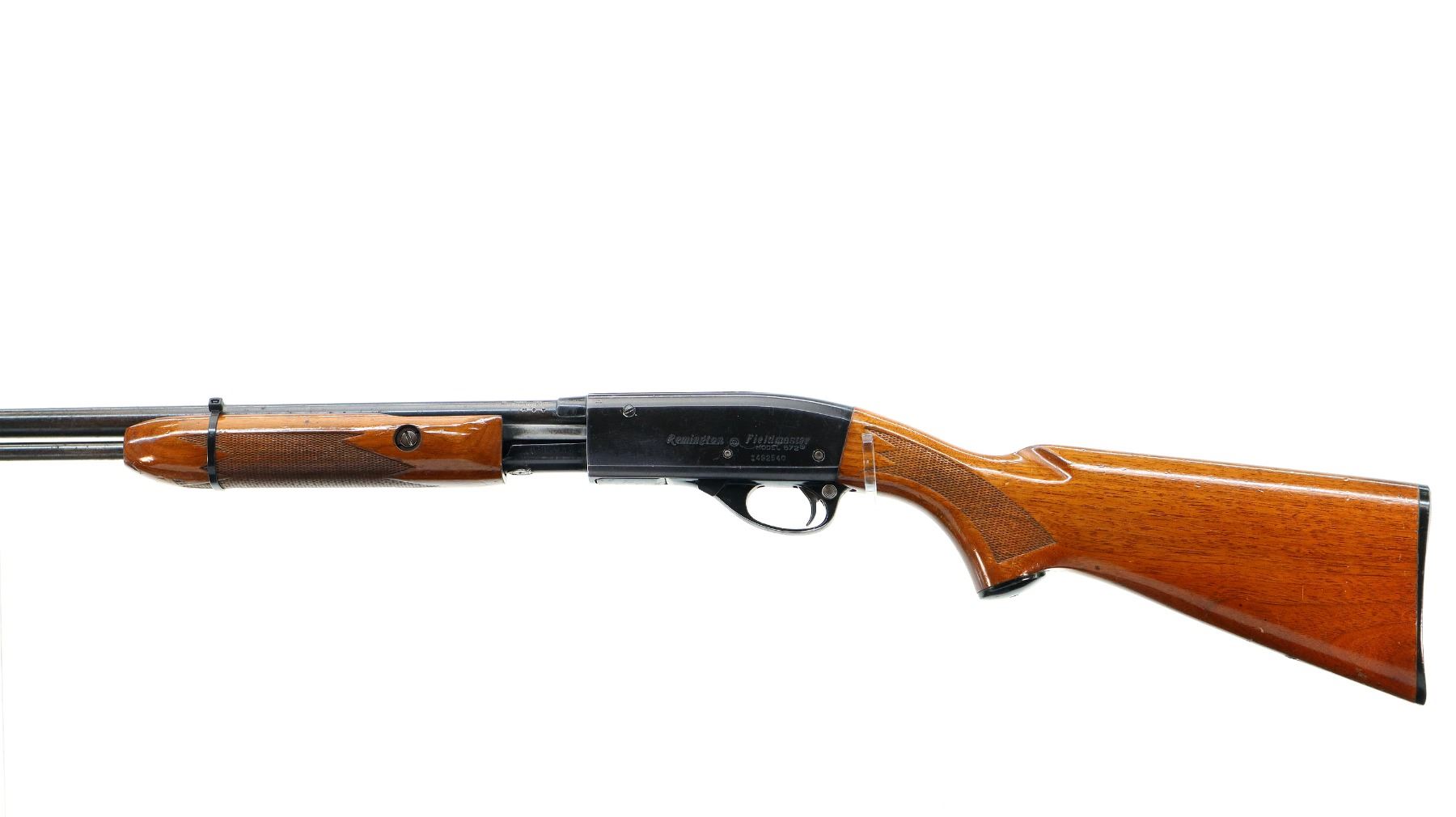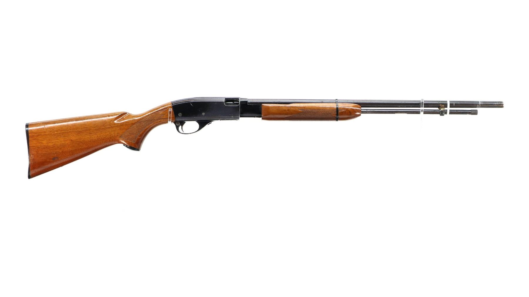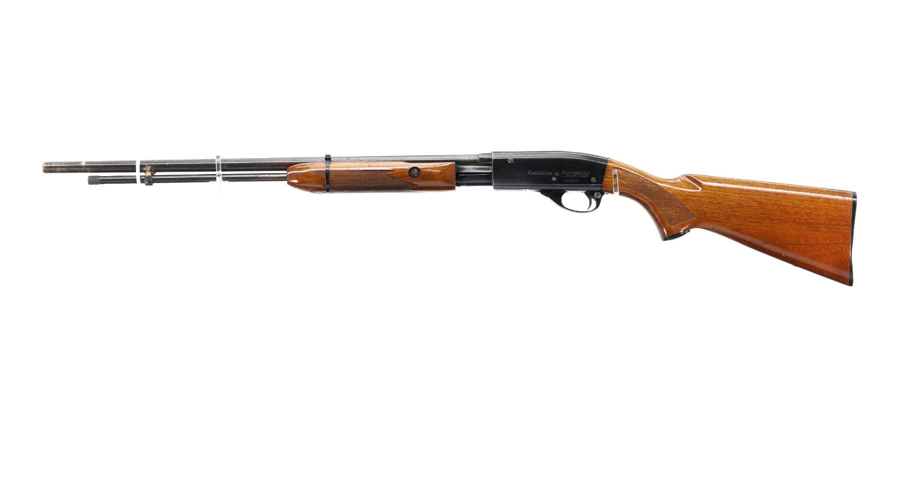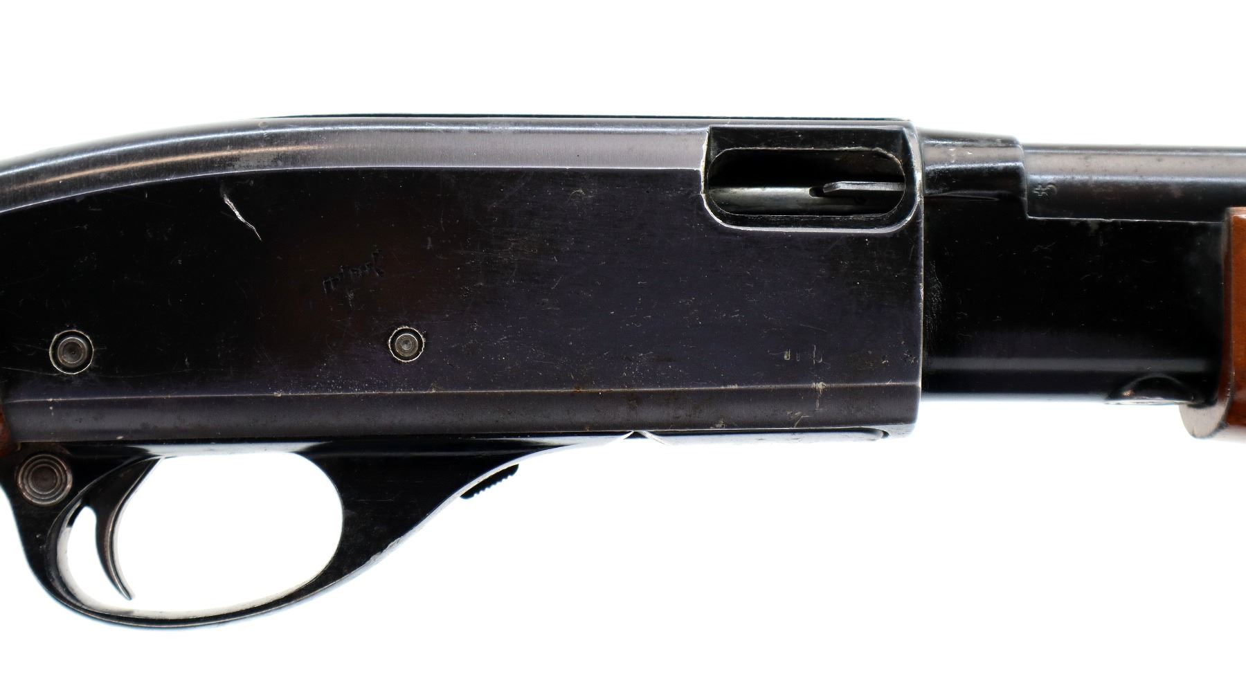 Main Description: Missing front and rear sights, holes are present, barrel appears to be shortened, grooved black alloy receiver. Two piece wood stocks, forearm does not fit properly requires adjustment or repair, checkered pistol grip and black polymer butt plate, grip cap, missing rear swivel hole is present, front magtube band not attached requires repair has welds visible.