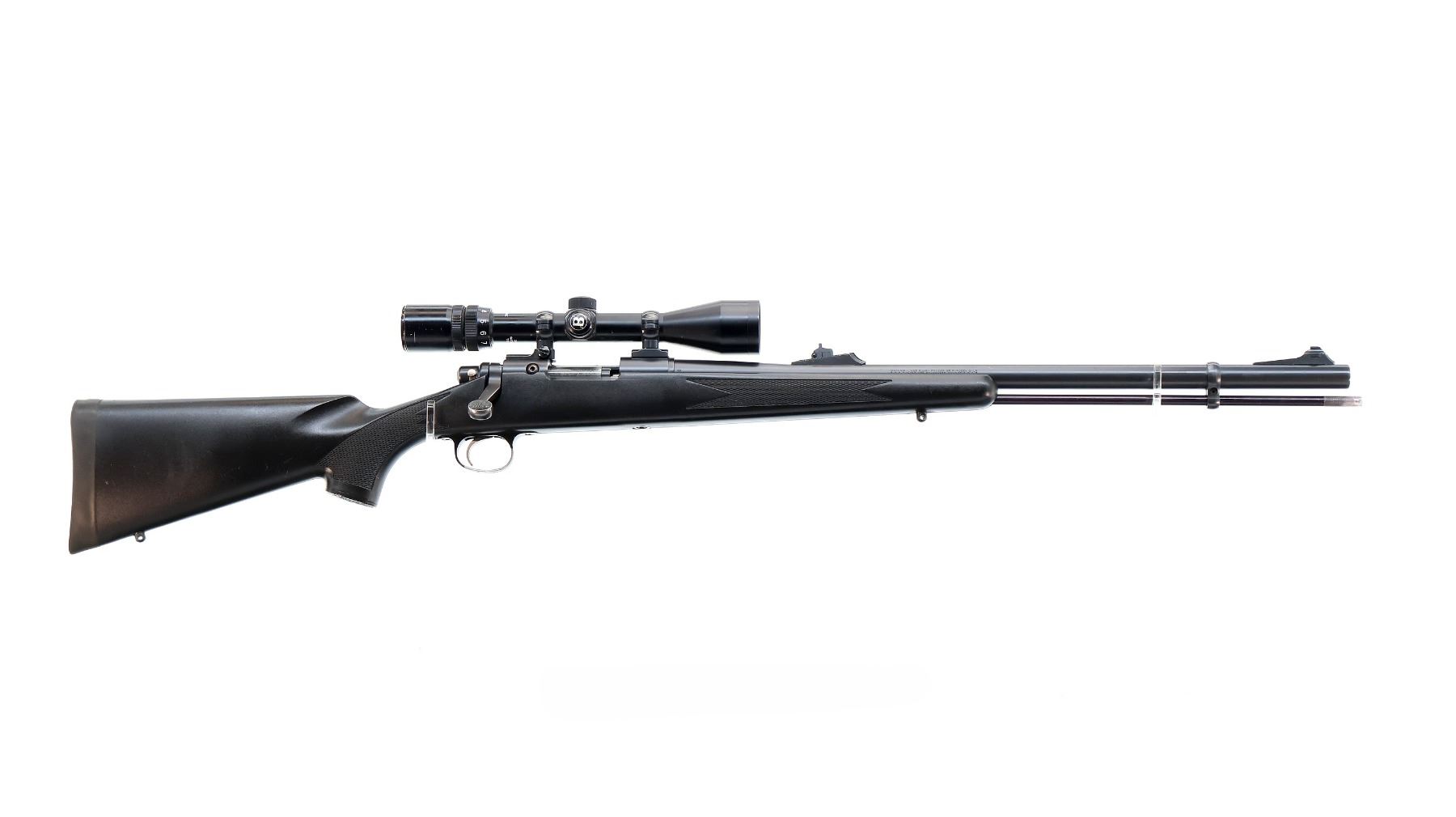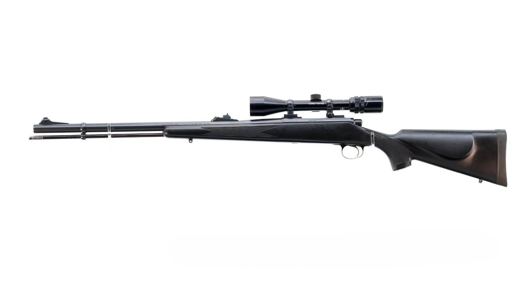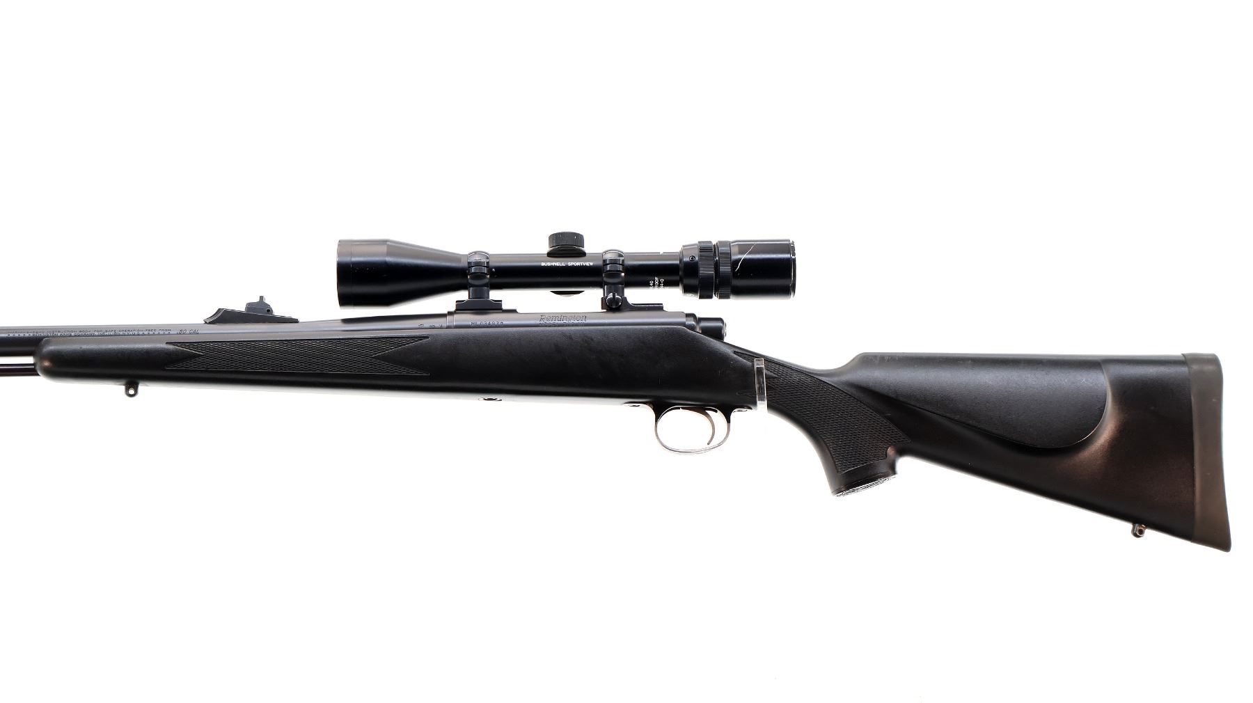 Main Description: Blade front sight with ramp, adjustable u notched rear sight, Satin blued finish, receiver drilled and tapped with Bushnell Sportview 3-9x40 scope installed, clear optics with duplex crosshair. Checkered bolt knob, uses percussion caps. One piece black synthetic stock, checkered forearm and pistol grip, cheek rest, black rubber recoil pad, grip cap, swivel studs, black alloy ramrod. Accessories include: Manual, Breech plug tool, cleaning guide, ramrod extensions, 2 cappers, spare breech plug, nipple, jags and allen keys with plastic case.