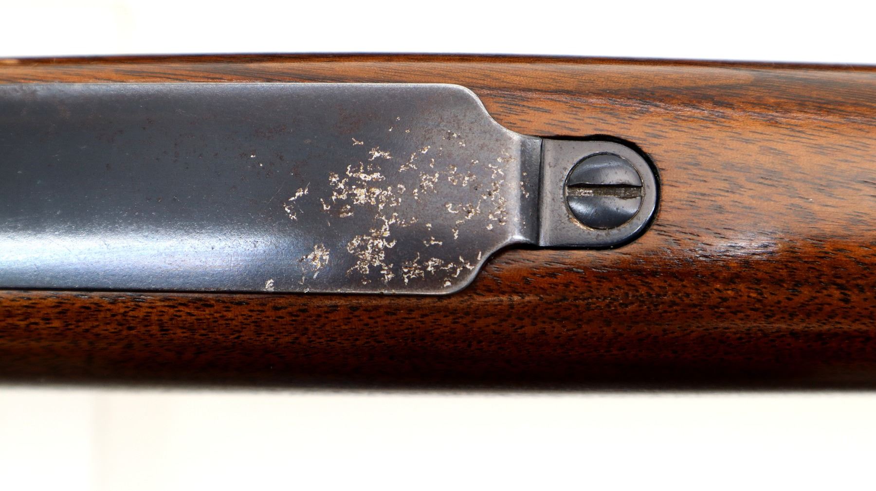 Wear: Metal finish shows some light pitting, rust speckles, scratches, handling marks and wear. Stock shows marks, scratches and wear.