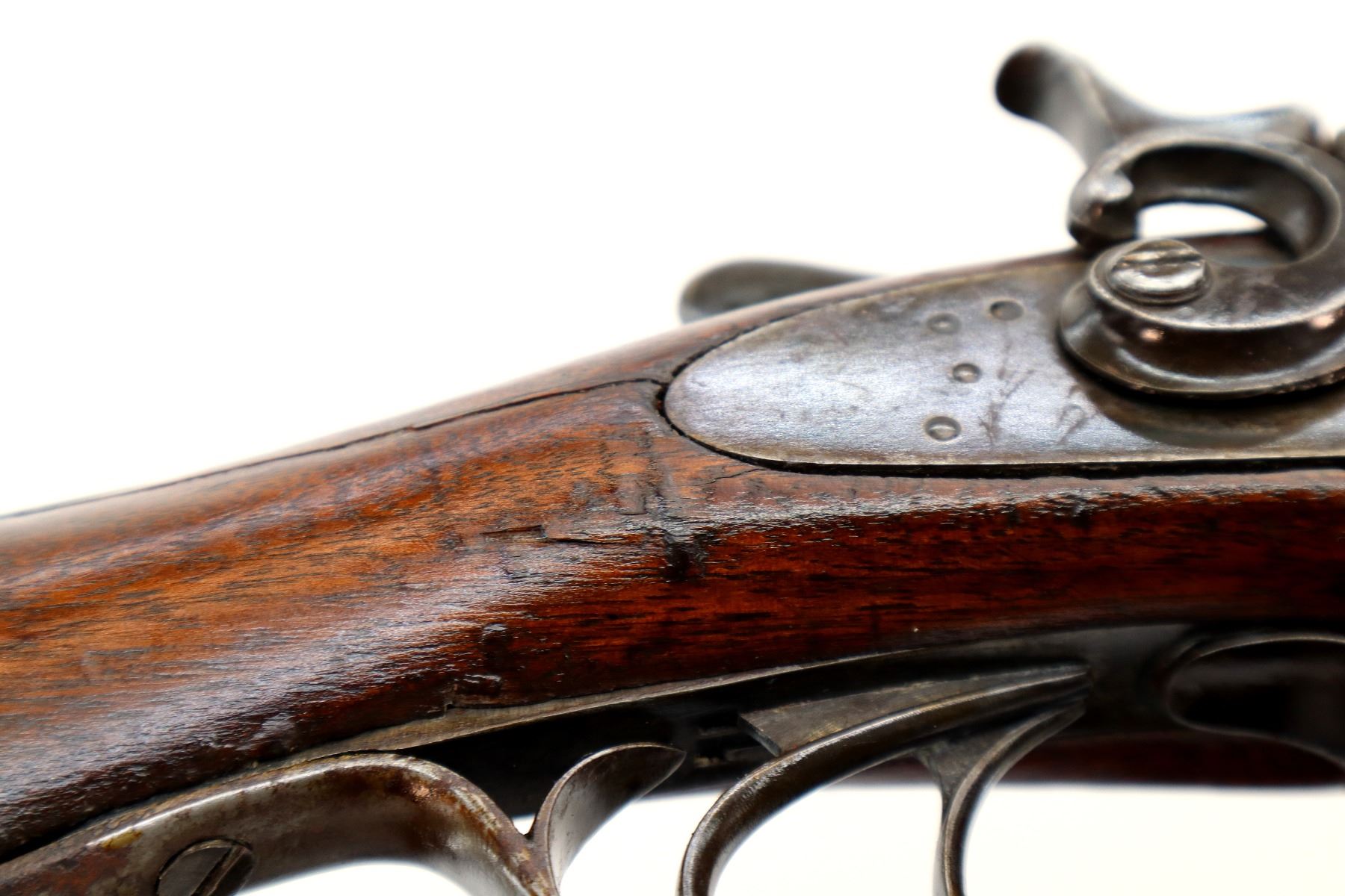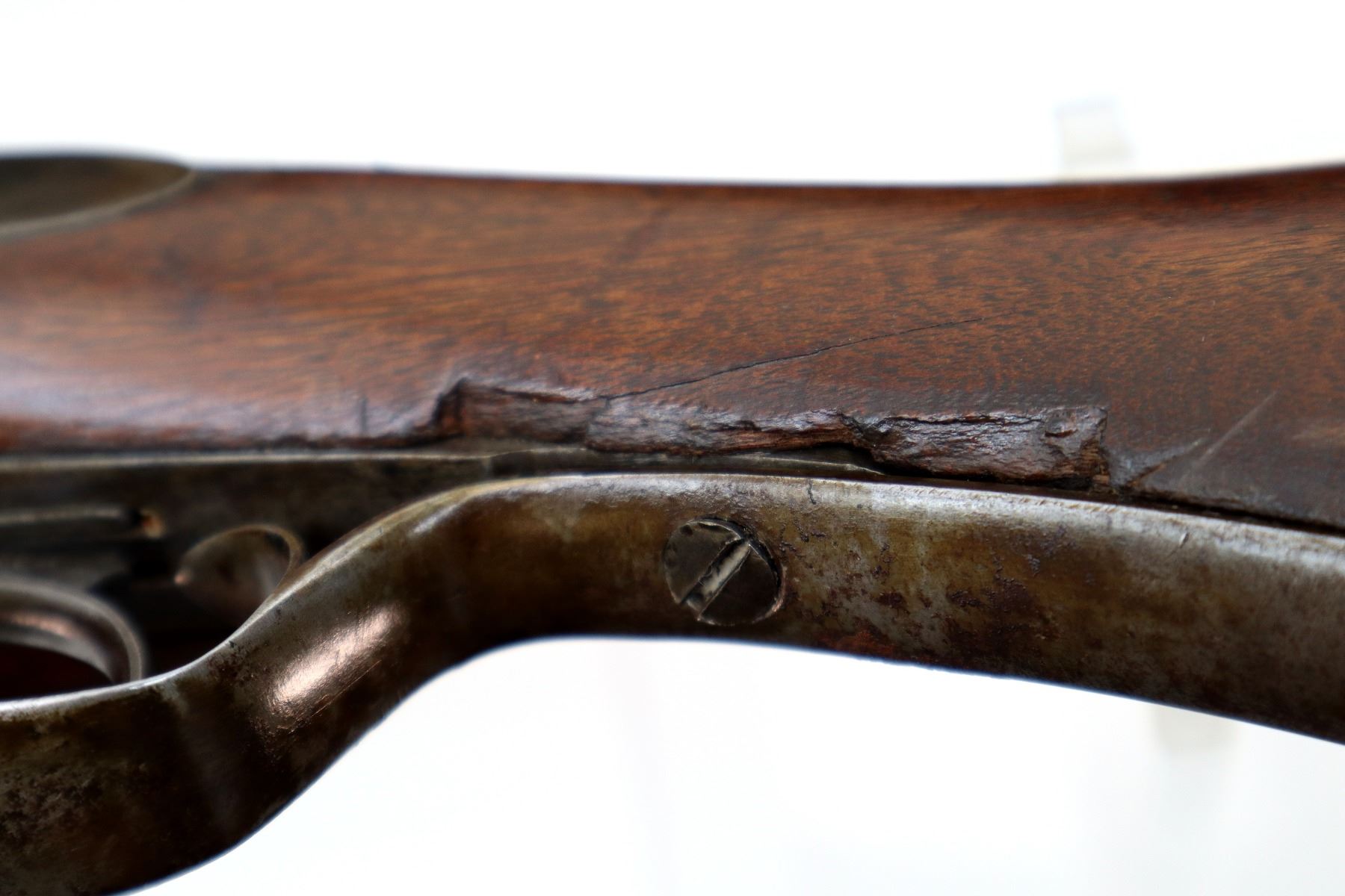 Wear: Metal finish turning brown with pitting, light rust, scratches, handling marks and wear. Stocks show some marks, scratches and wear.