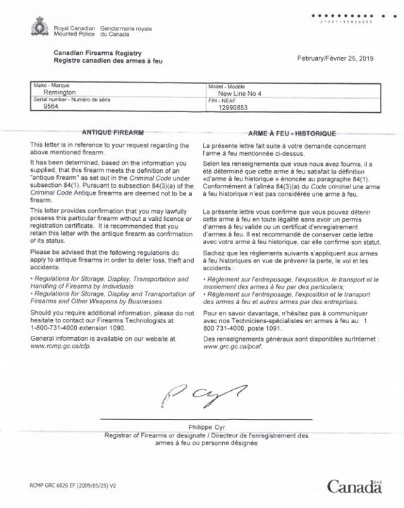 Class: Canadian Antique, No PAL Required