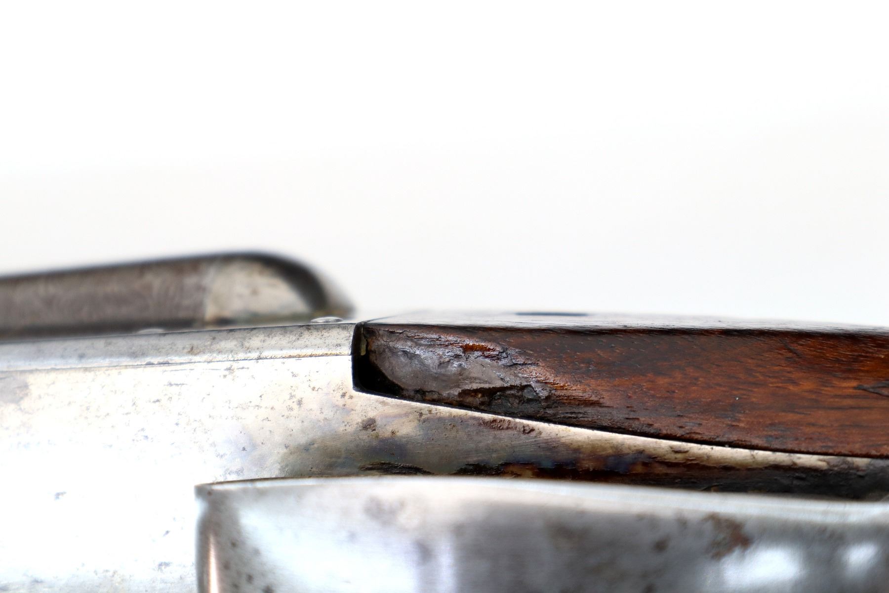 Wear: Metal finish turning silver grey with light rust speckles, scratches, handling marks and wear. Stocks show some marks, scratches and wear.