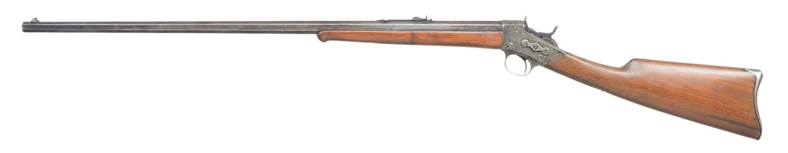 Cal. 25-20. S# H42793. Oct. 28" bbl. w/ sporting sights & Remington Arms Co. address. Schnabel tipped forearm & perch belly walnut stock w/ curved metal buttplate. CONDITION: fair metal turned brown/gray patina w/ areas of faded blue, marks & peppery oxidation. Sanded & refinished wood has inlet wood repair on sides of forearm near action along w/ cracks & deep marks. Good bore w/ pitting. (22-2808/MD). CURIO. $500-700.