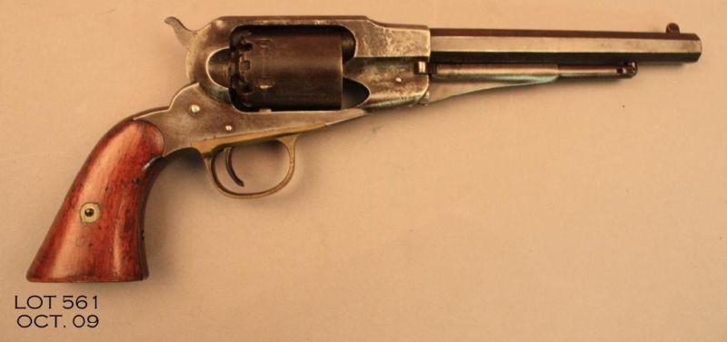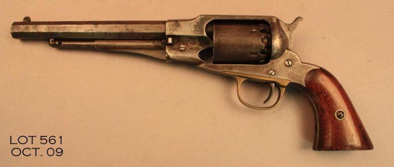 REMINGTON New Model Navy, # 28362, .36 cal., 7 3/8” barrel, blued finish. Good overall condition showing approximately 20%-40% original bluing, with mild pitting on the frame and cylinder. Bore is good, grips are good showing only minor chipsfrom the bottom of the left grip panel, action is crisp. Est. $900-$1,800.