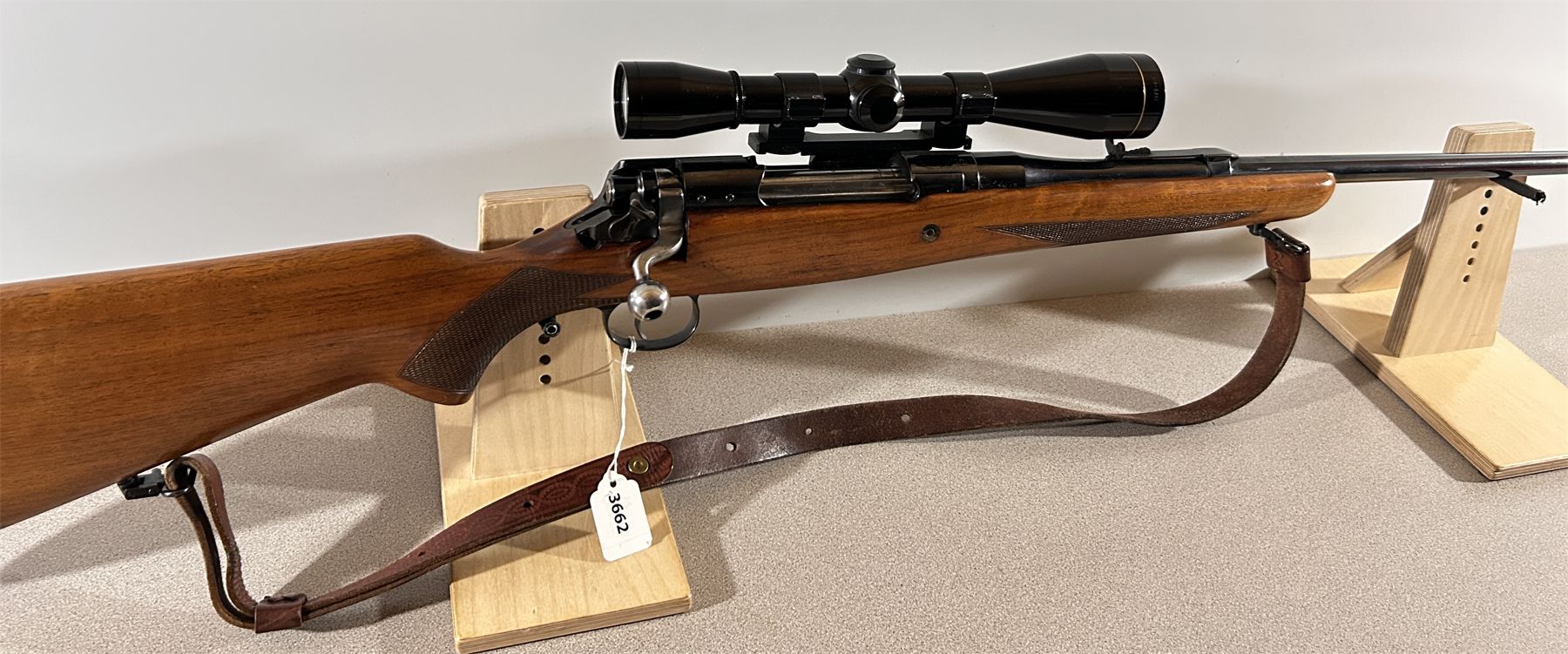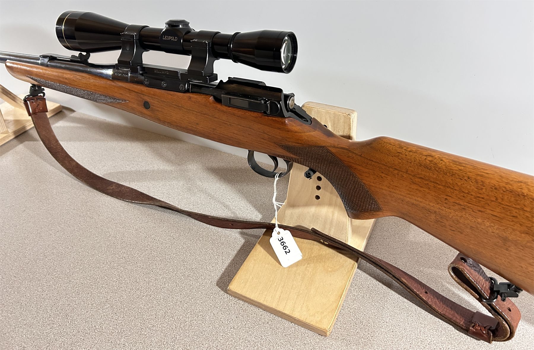 CONDITION: VG OVERALL INCLUDING BORE. SPECS: NONE. EXTRAS: LEUPOLD M8 6 X 42 SCOPE. LEATHER SLING. RECOIL PAD. S/N: 30031 (?).