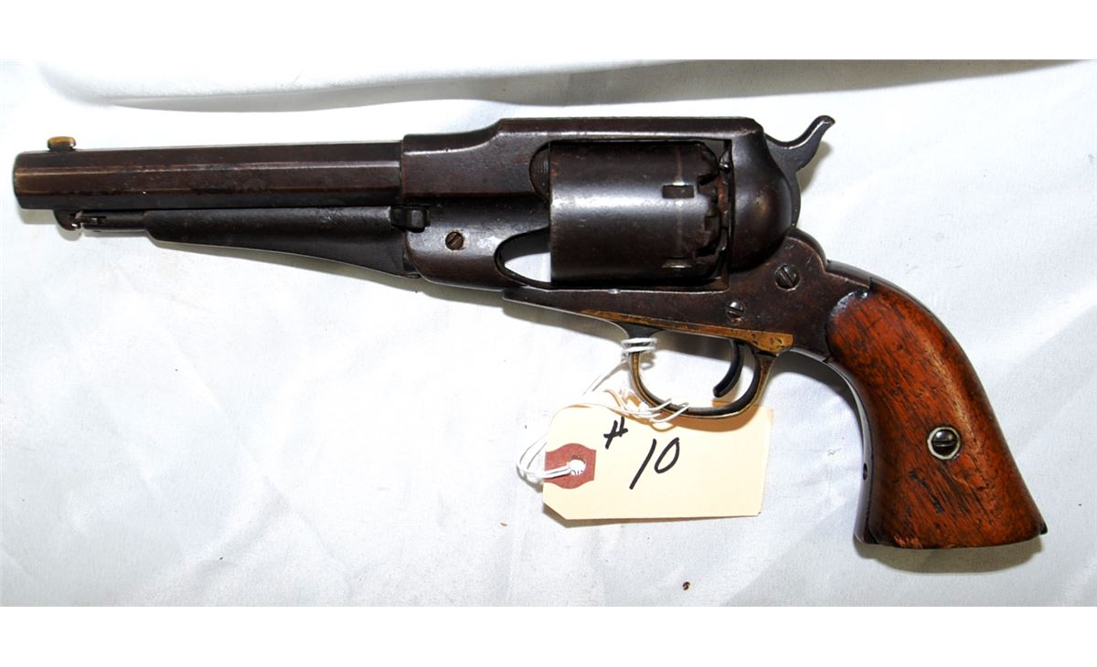 REMINGTON POLICE .36 CALIBER PERCUSSION REVOLVER - NEW MODEL - 6 1/2" OCTAGON BARREL , SINGLE ACTION - WALNUT GRIP - OVER ALL WORKING CONDITION.