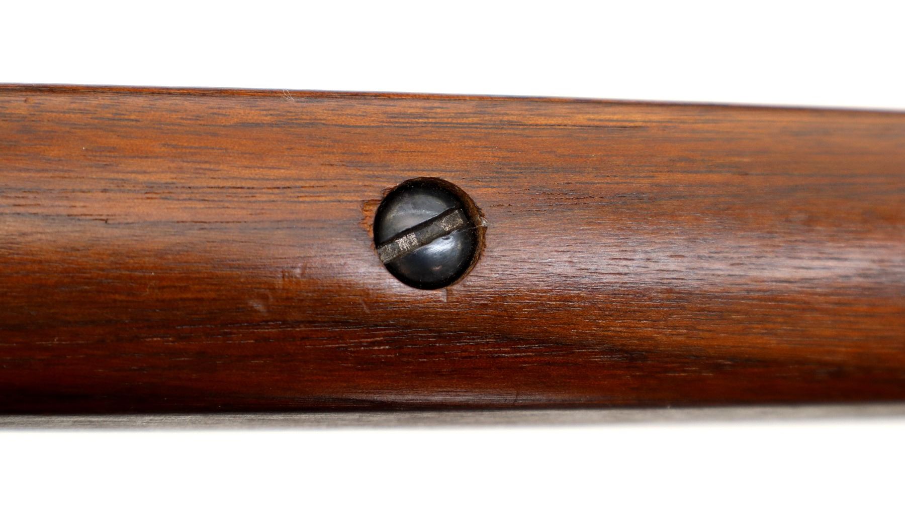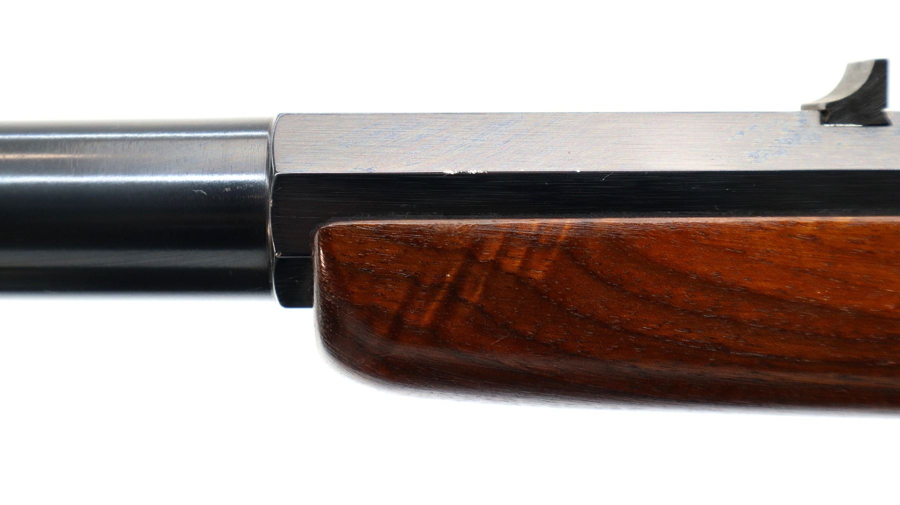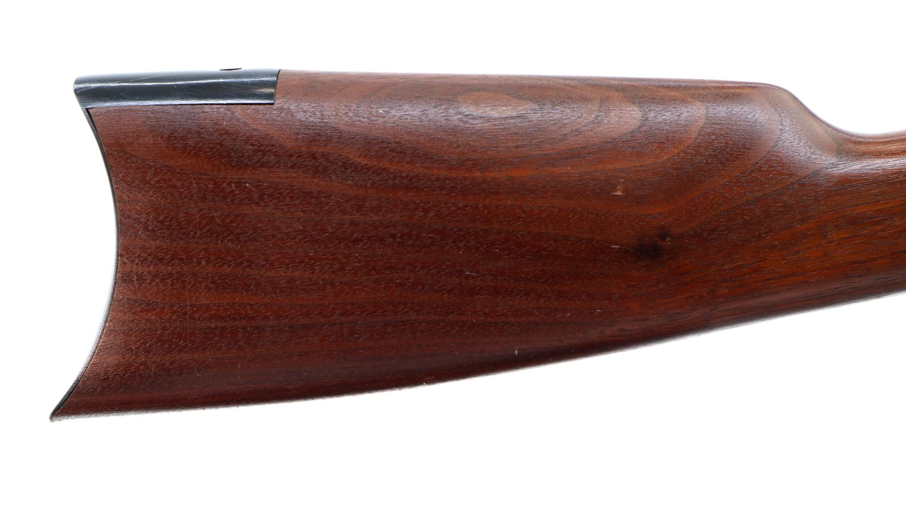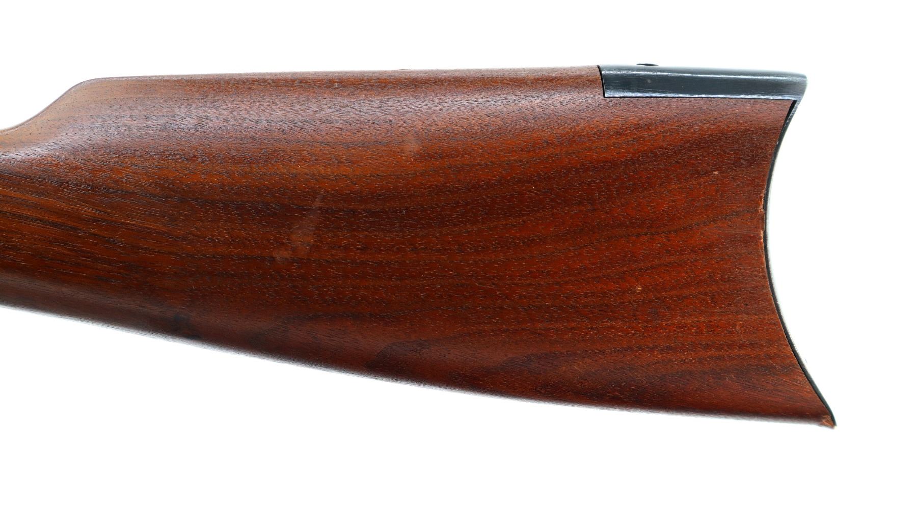 Main Description: Blade front sight, u notched rear sight, metal has been polished and reblued, Numrich Arms half octagon and half round barrel, checkered spur hammer and opening lever, extractor is present, saddle ring and stud. Two piece wood stocks, straight grip, stock is slightly loose, smooth curved steel butt plate, stock chipped at toe.