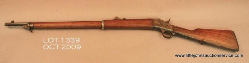 REMINGTON Rolling Block rifle made for export to Mexico and South America, # 809, 7mm, 30" round barrel, good condition overall, minor pitting, wood is better than average. Est. $150-$300.