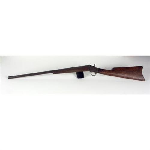 FIREARM: A Remington single action 22 student (?) rifle, by Remington Arms Company, Ilion, N.Y.U.S., Serial Number J232136, 37'' overall length, 21 _'' detachable barrel, walnut with metal stock plate end, estimated to be from 1875-1900, untested. Note: Stock shows clear years of use but no broken or repair work was noted.