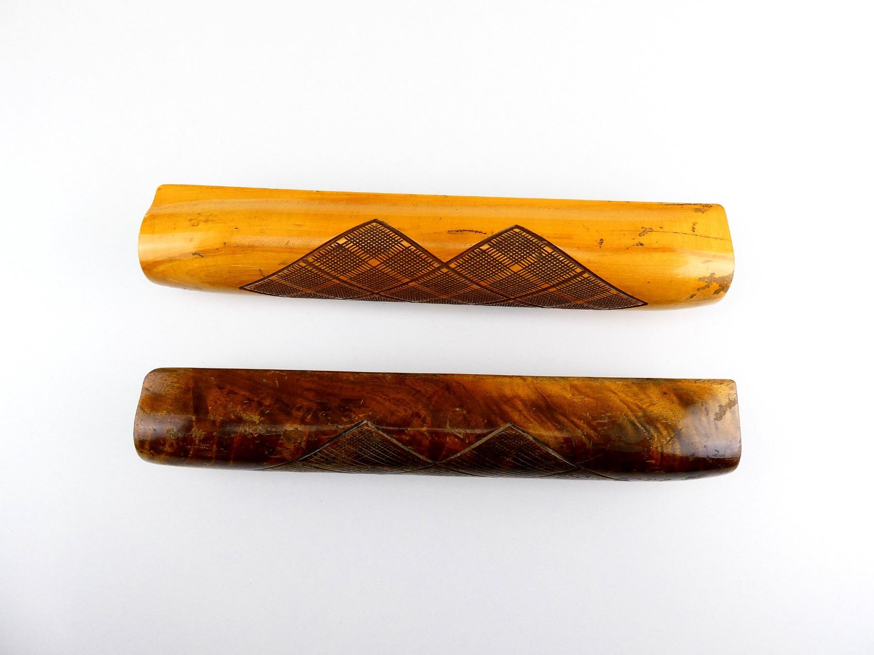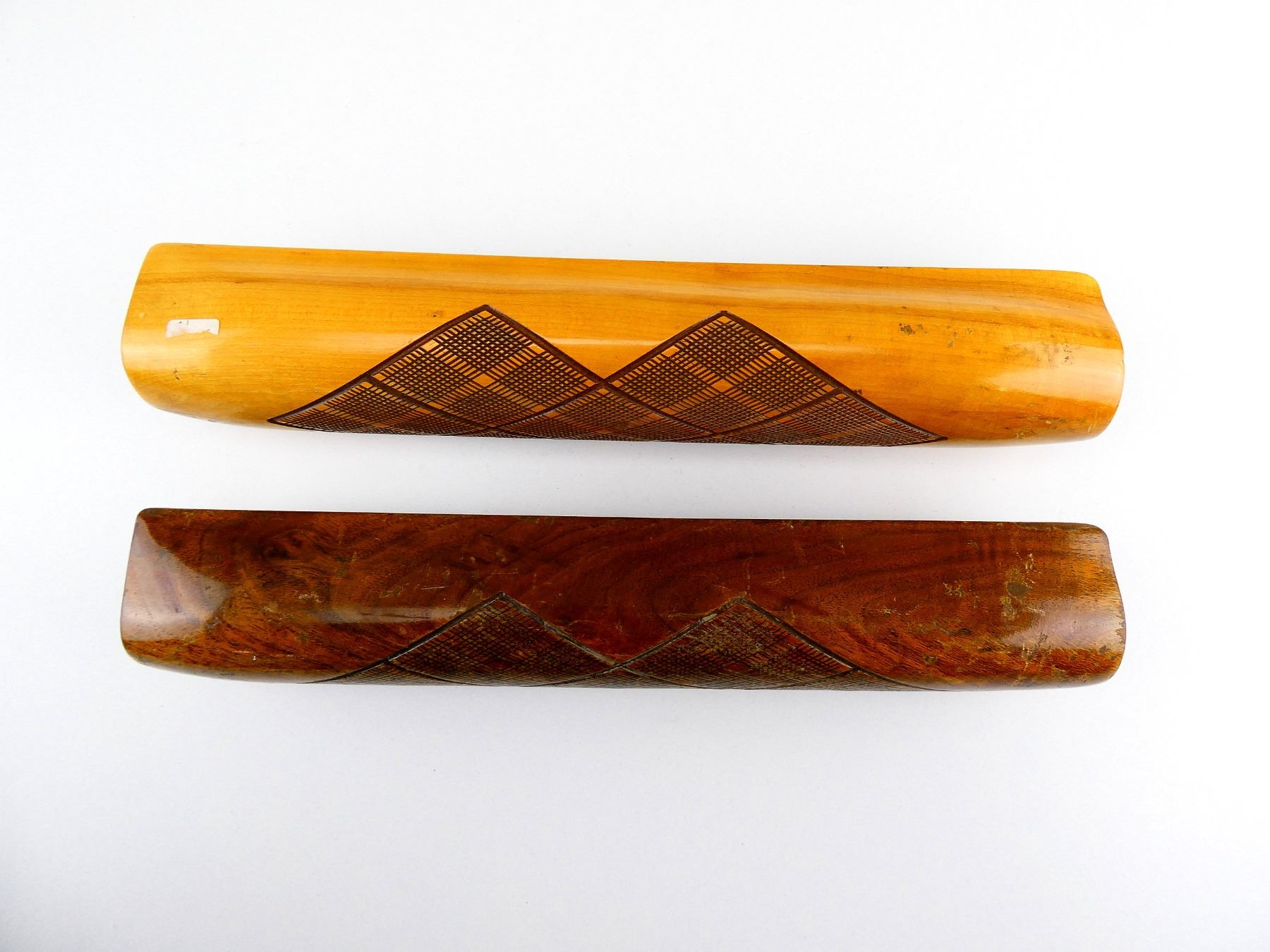 LOT INCLUDES; (2) WOODEN FORENDS, CHECKERED, MAY HAVE SMALL CRACKS & CHIPS, OAL APPROX. 11.25". MAY REQUIRE FITTING. SEE PHOTOS.