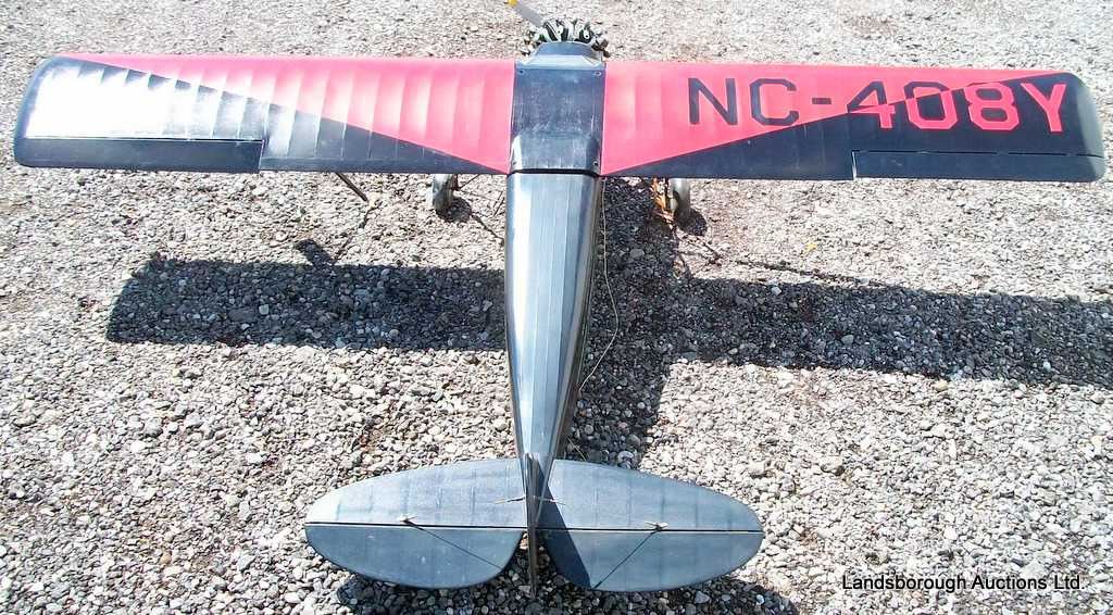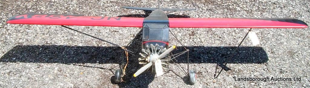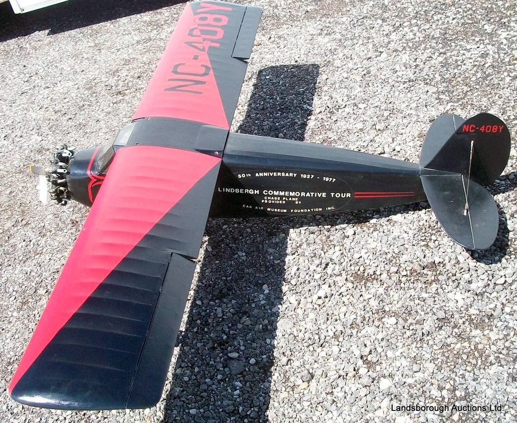 MUST PICK UP, WILL NOT SHIP. FUEL ENGINE POWERED, LINDBERG COMMEMORATIVE. BLACK WITH RED STRIPES, LENGTH 58 INCHES, WINGS 81 INCHES.