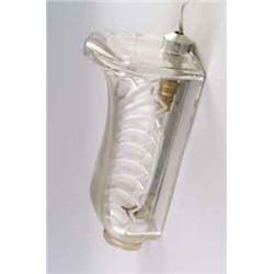 RENÉ LALIQUE, Wingen-sur-Moder Marc Lalique Wandleuchte, farbloses Pressglas, mattgeätzt. Über kurzem, profiliertem Schaft eine rechteckige, nach oben ausgezogene Glaswandung, plastisch in Form eines Palmwedels. Metallhalterung, elektrifiziert. H.: 24 cm. Bez.: LALIQUE CRISTAL FRANCE (zweizeilig gesandstrahlt). Nach 1947