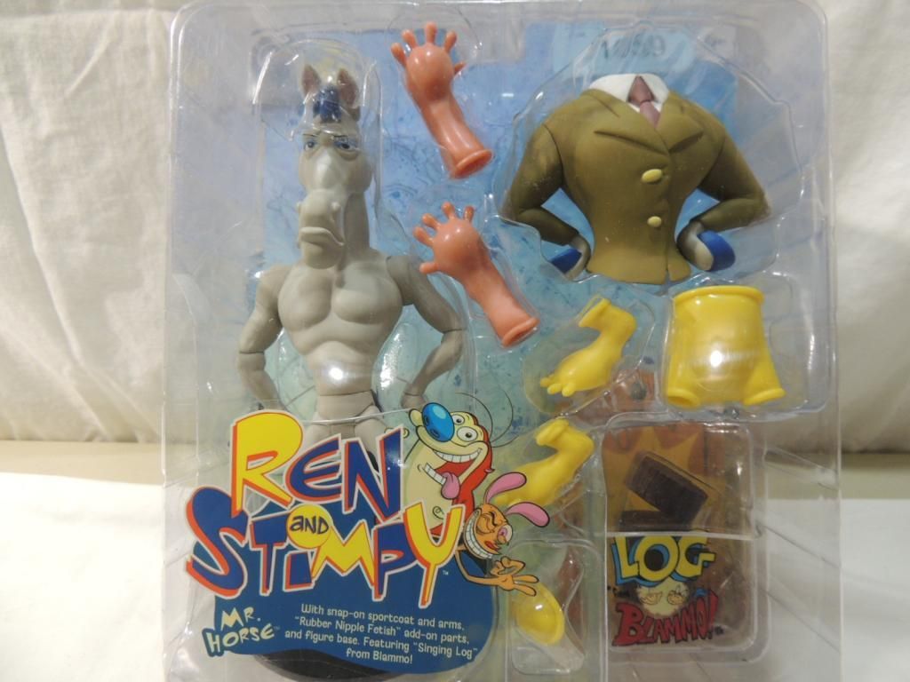 REN AND STIMPY MR HORSE ACTION FUGRE WITH SNAP ON SPORTCOAT AND ARMS. RUBBER NIPPLE FETISH ADD ON PARTS AND FIGURE BASE. FEATURING SINGING LOG FROM BLAMMO. AS SHOWN SEE PHOTO FOR MORE DETAILS.