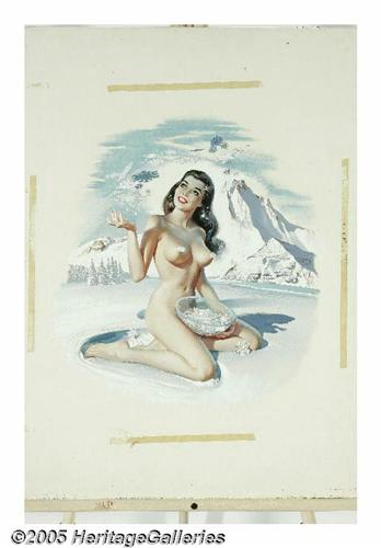 <B>REN WICKS (American 1911-1998)</B></I> <BR>Original Pin-Up Illustration <BR>Gouache on board <BR>20.5in. x 16in. (sight size) <BR>Signed lower left: Ren Wicks <BR><BR><Keywords: pin-up, girl, portrait, acrylic, painting>