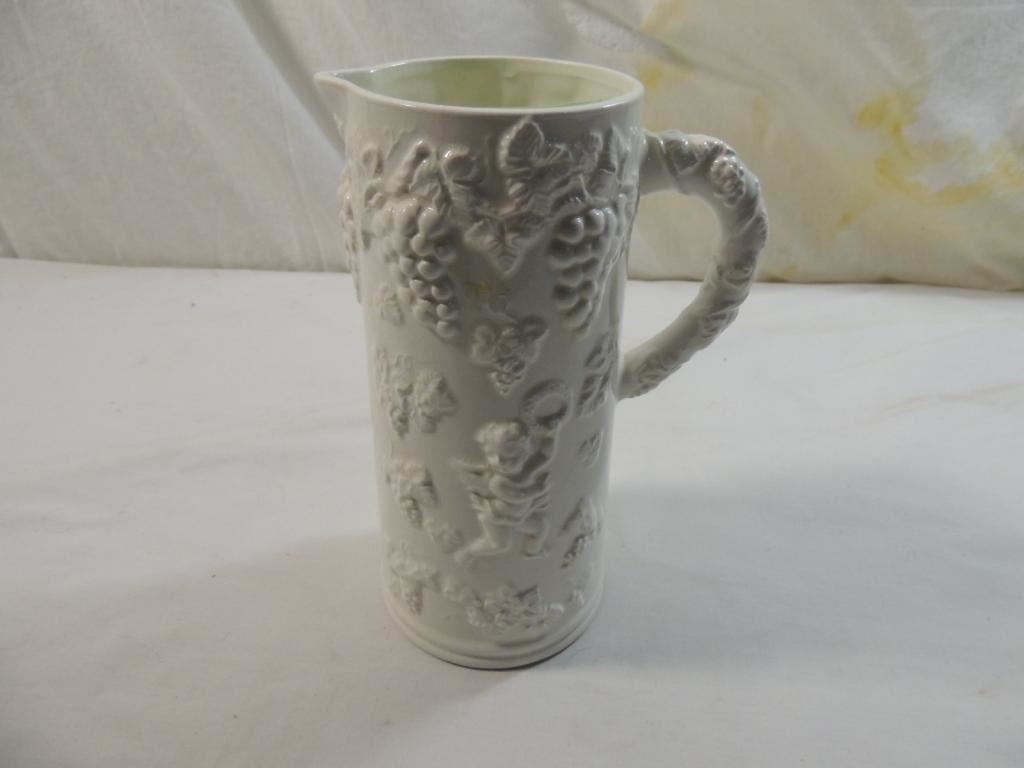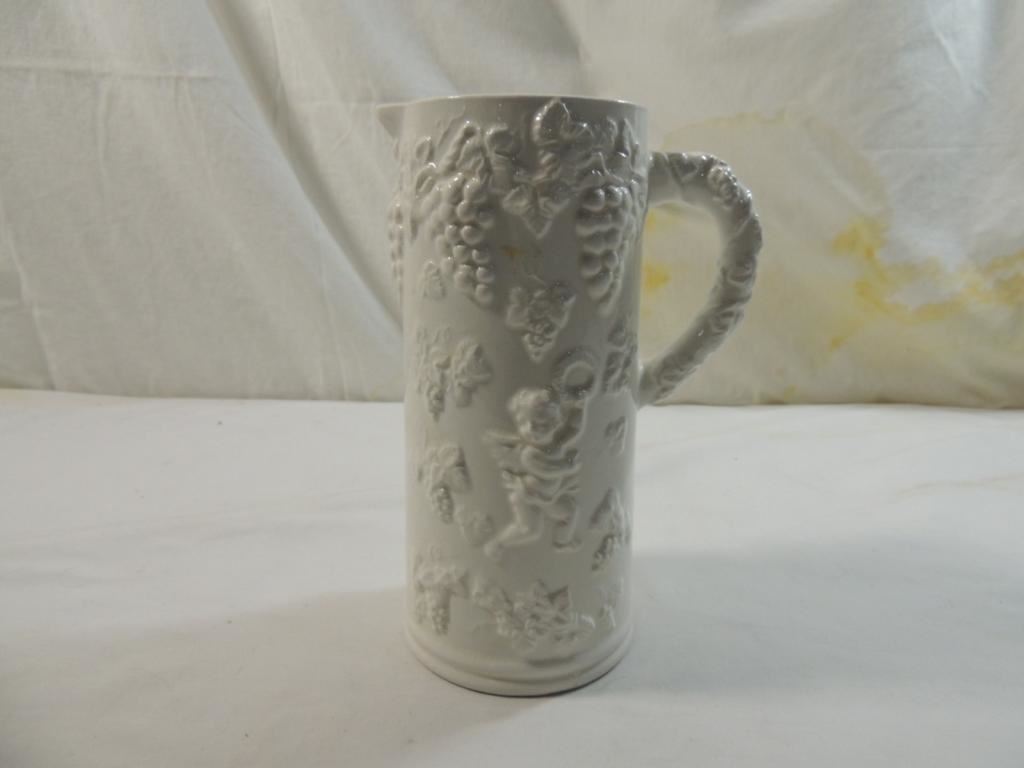 RENAISSANCE BY LEFTON VASE PITCHER CHERUBS GRAPES WHITE 3-D LEAVES VINES, ITALIAN, AS SHOWN SEE PHOTO FOR MORE DETAILS.