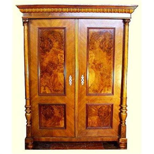 <tr><td>Title:RENAISSANCE REVIVAL BURR WALNUT ARMOIRE c.1900</td></tr>