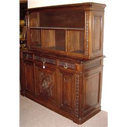 RENAISSANCE REVIVAL STYLE CARVED WALNUT THREE-DRAWER/THREE-DOOR BOOKCASE/BUFFET, early 20th cent…
