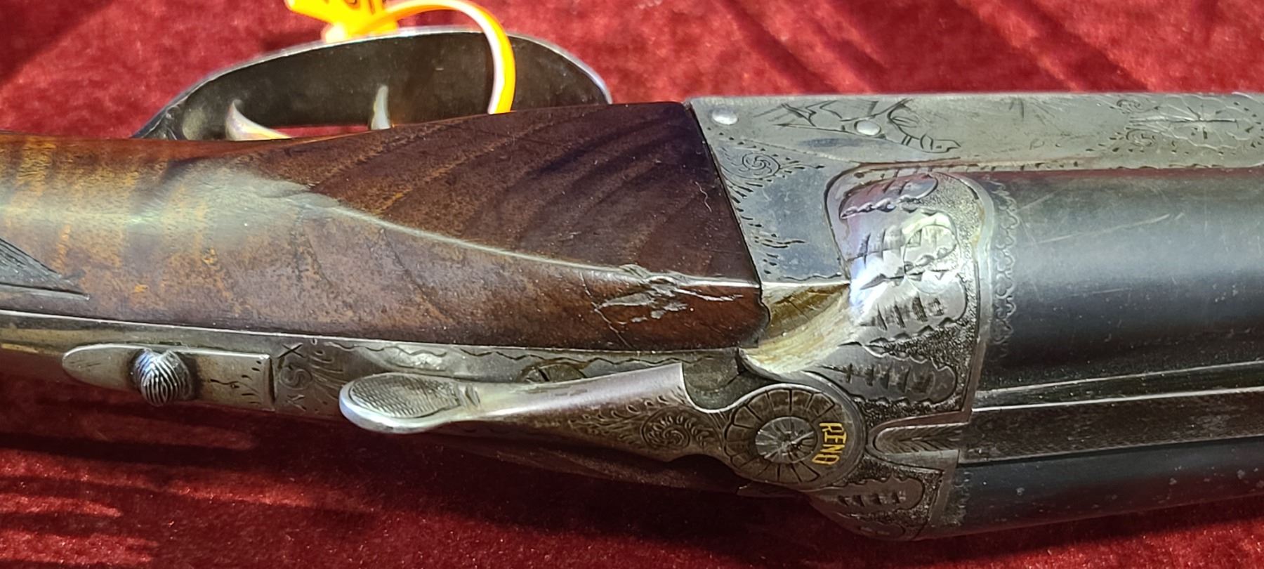 RENO 12 GA SIDE X SIDE SHOT GUN SIDE LOCK, SN 1460, 26 INCH BARREL VERY NICE CONDITION (389)