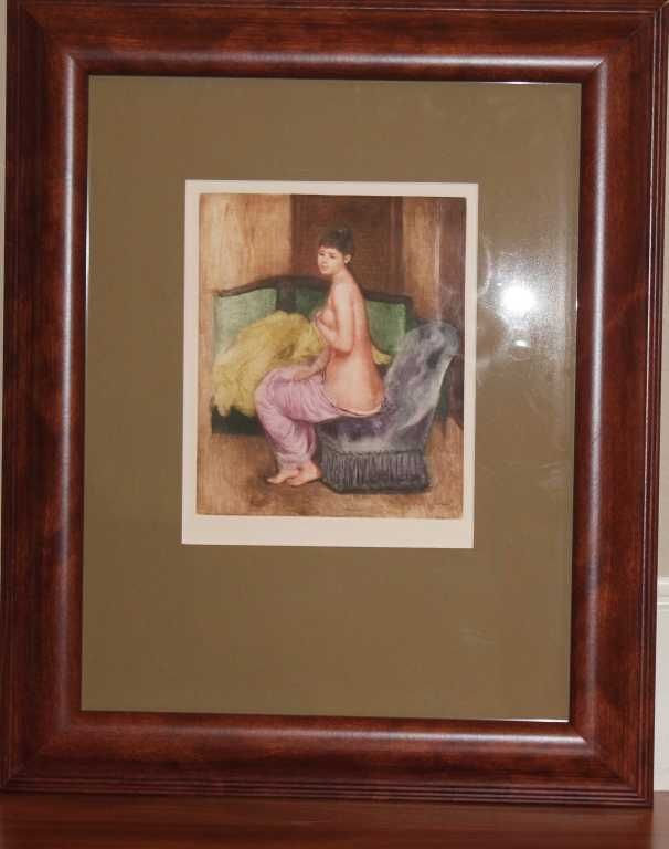 RENOIR "LE REPOS" ETCHING - AMBROISE VOLLARD ESTATE - HAND COLORED ETCHING - EMBOSSED VOLLARD ESTATE SEAL - PROFESSIONALLY FRAMED AND MATTED - MINT - IMAGE SIZE 9" X 7.5"