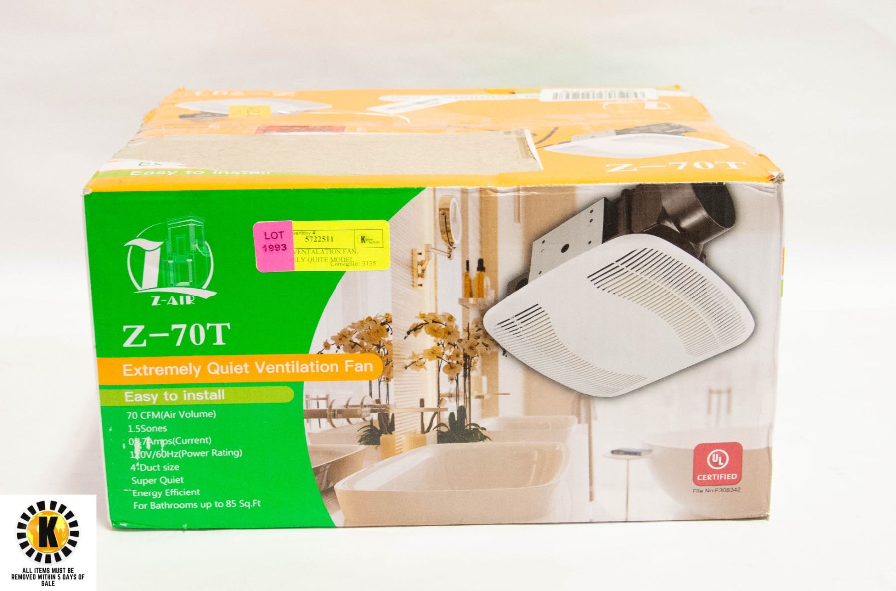 RETAILS $75, ZION Z-70T 70 CFM BATHROOM VENTILATION FAN 1.5 SONES UP TO 85 SQ FT ULTRA QUIET BATHROOM FAN CEILING 4" DUCT BATHROOM EXHAUST FAN ENERGY STAR HVI UL CERTIFIED **ALL ITEMS MUST BE REMOVED BY 5PM SATURDAY, NOVEMBER 4TH 2023. ALL REMAINING ITEMS WILL BE SUBJECT TO A $6.00 PER DAY STORAGE CHARGE. ANY ITEMS REMAINING AFTER MONDAY, NOVEMBER 18TH, 2023 WILL BE CONSIDERED FORFEITED. NO REFUNDS WILL BE ISSUED FOR FORFEITED ITEMS. TO SCHEDULE A PICK UP APPOINTMENT CLICK HERE