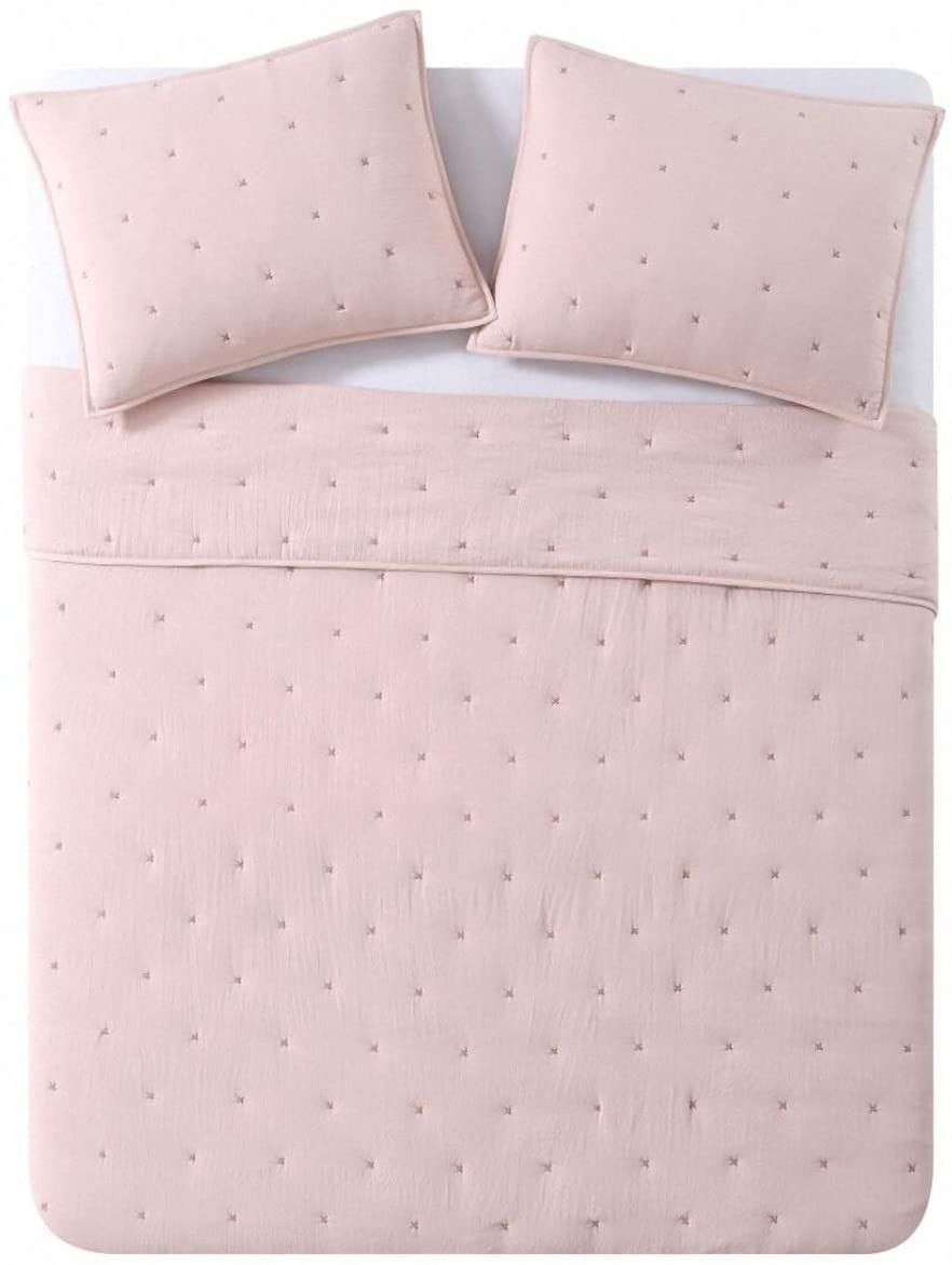 KING SIZE COMFORTER APPROX. 92 X 96", 2 PILLOW SHAMS APPROX. 20 X 26, STAR EMBROIDERY, COLOUR WILL VARY SLIGHTLY, APPEARS TO BE BETWEEN A ROSE AND BEIGE COLOUR