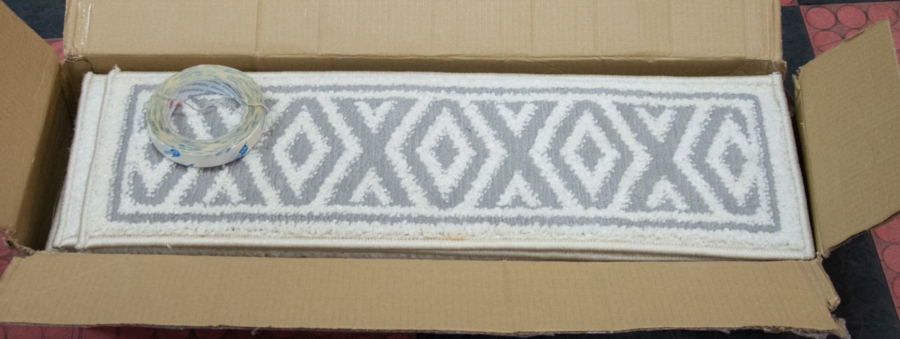 CREAM/GREY, 27 X 8.5", COMES WITH DOUBLE SIDED CARPET TAPE, MADE BY SOFIA RUGS, AMZ SES