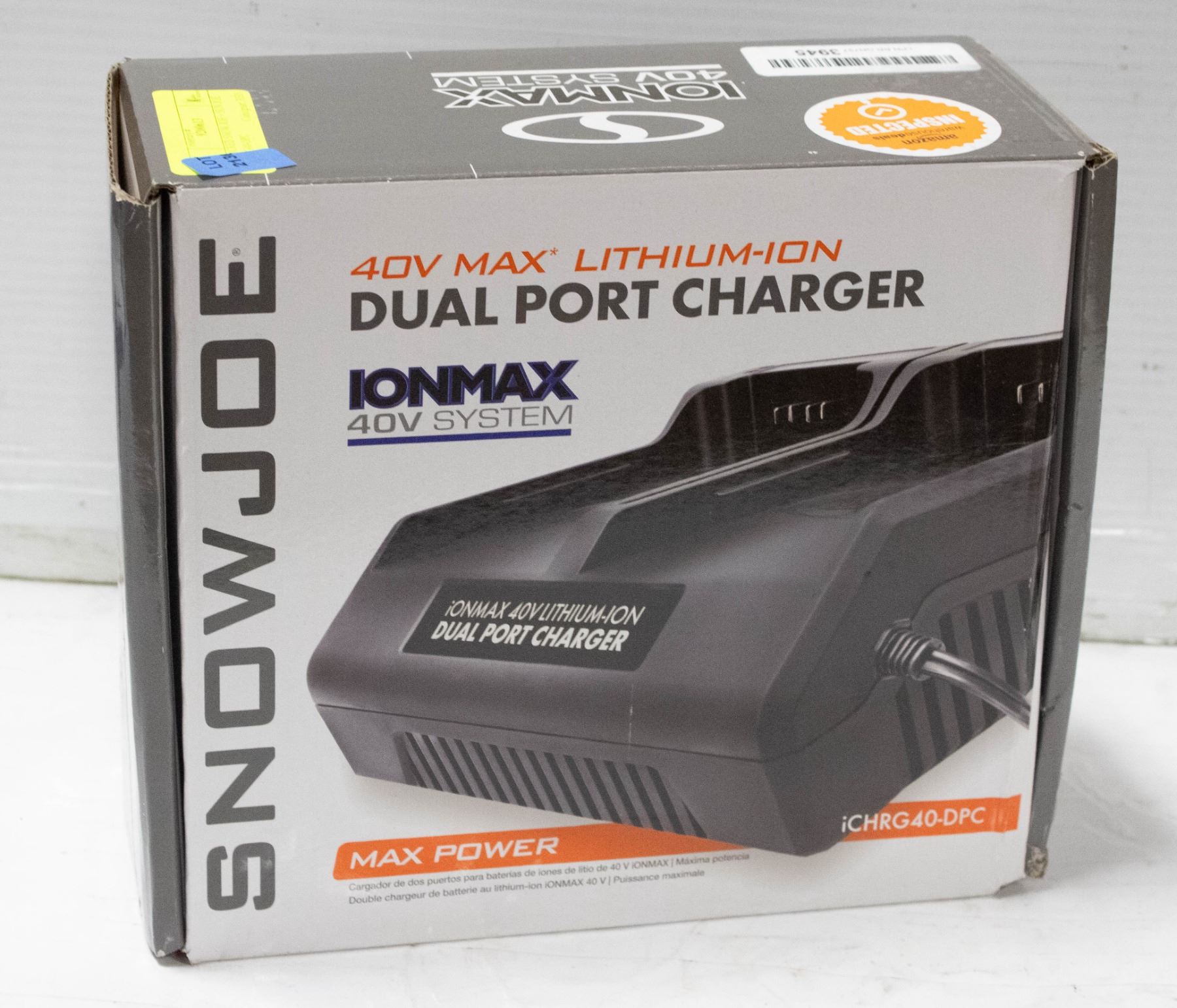 DUAL PORT ION 40 V ECOSHARP LITHIUM-ION CHARGER RETAILS $92 **ALL ITEMS MUST BE REMOVED BY 5PM SATURDAY, AUGUST 26TH 2023. ALL REMAINING ITEMS WILL BE SUBJECT TO A $6.00 PER DAY STORAGE CHARGE. ANY ITEMS REMAINING AFTER MONDAY, SEPTEMBER 11TH, 2023 WILL BE CONSIDERED FORFEITED. NO REFUNDS WILL BE ISSUED FOR FORFEITED ITEMS. TO SCHEDULE A PICK UP APPOINTMENT CLICK HERE