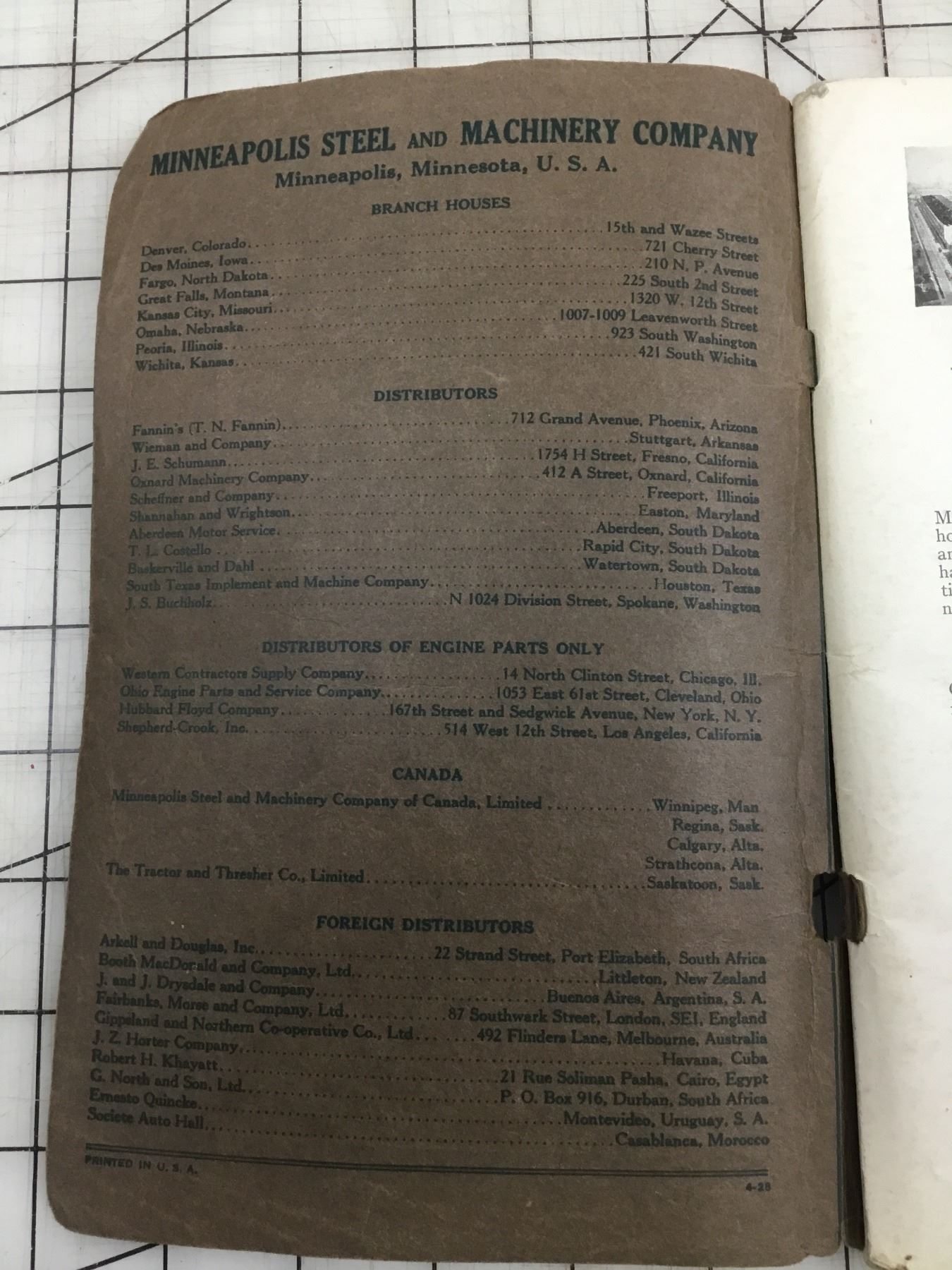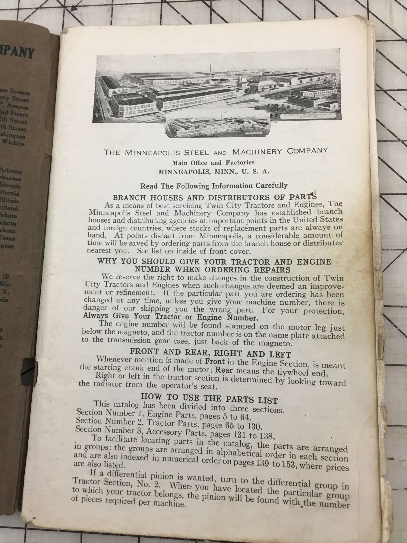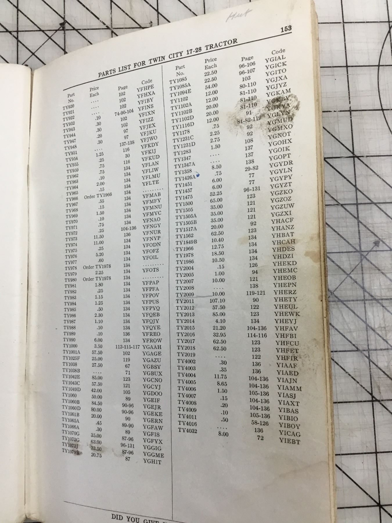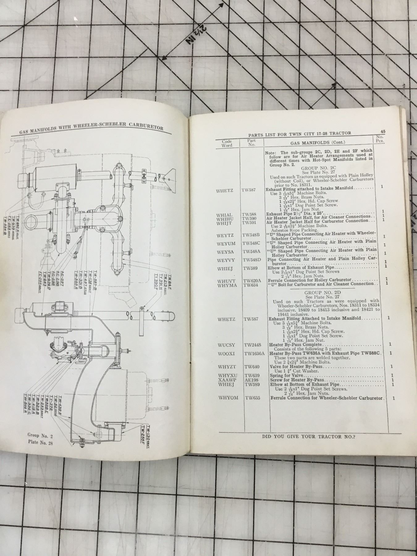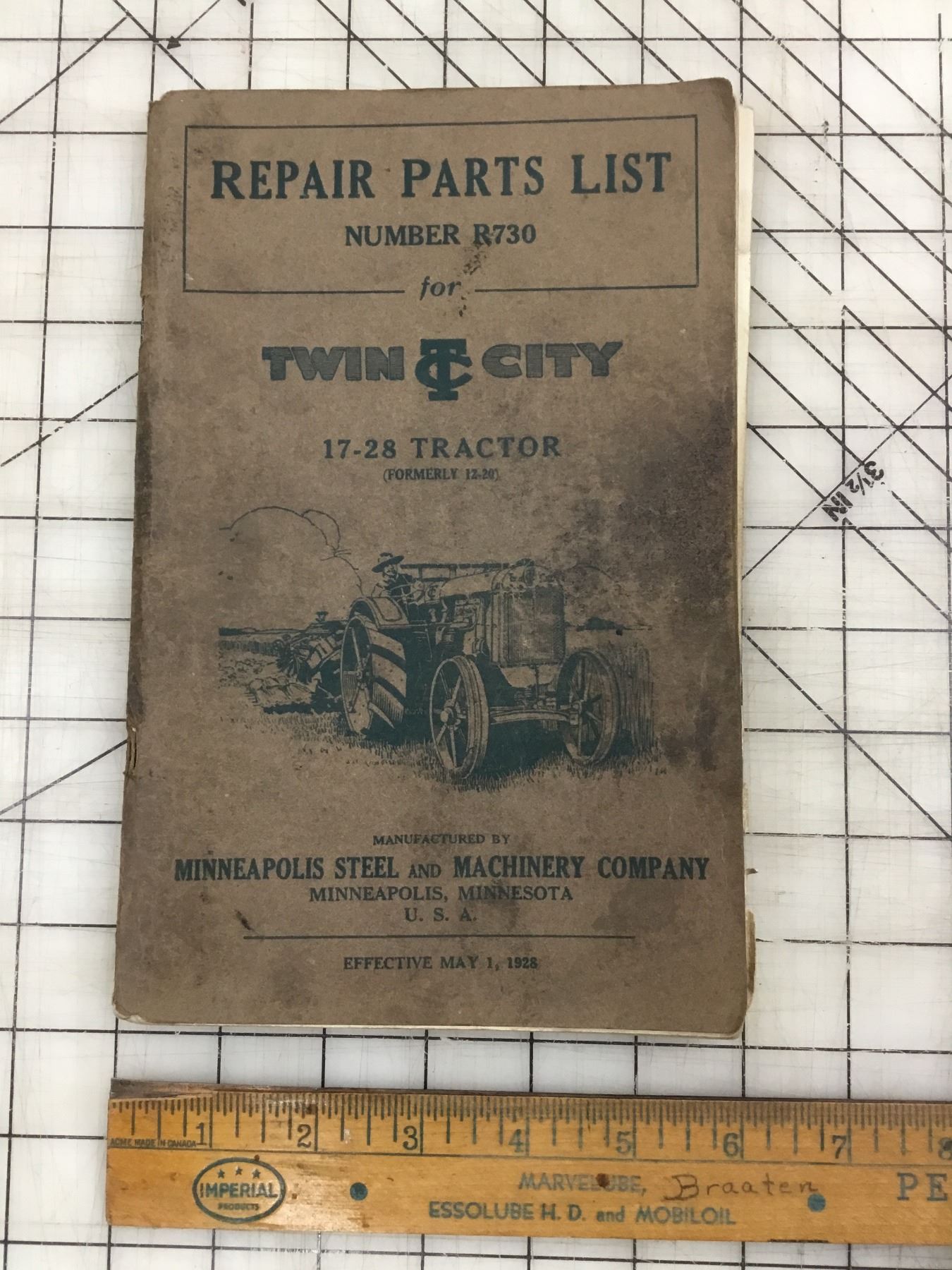 REPAIR PARTS LIST/ BOOKLET FOR TWIN CITY 17-28 TRACTOR
