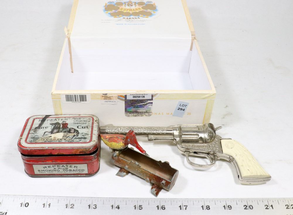 AND A HUBLEY CAP GUN IN A HABANOS CIGAR BOX. COLLECTIBLES