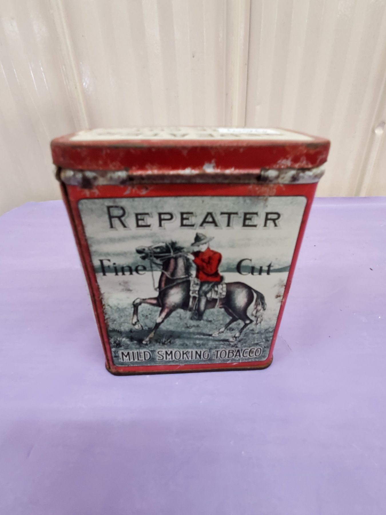 REPEATER TOBACCO TIN WITH MOUNTIE