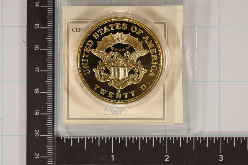 DOUBLE EAGLE COIN IN HARD PLASTIC CAPSULE WITH CERT BY THE AMERICAN MINT.