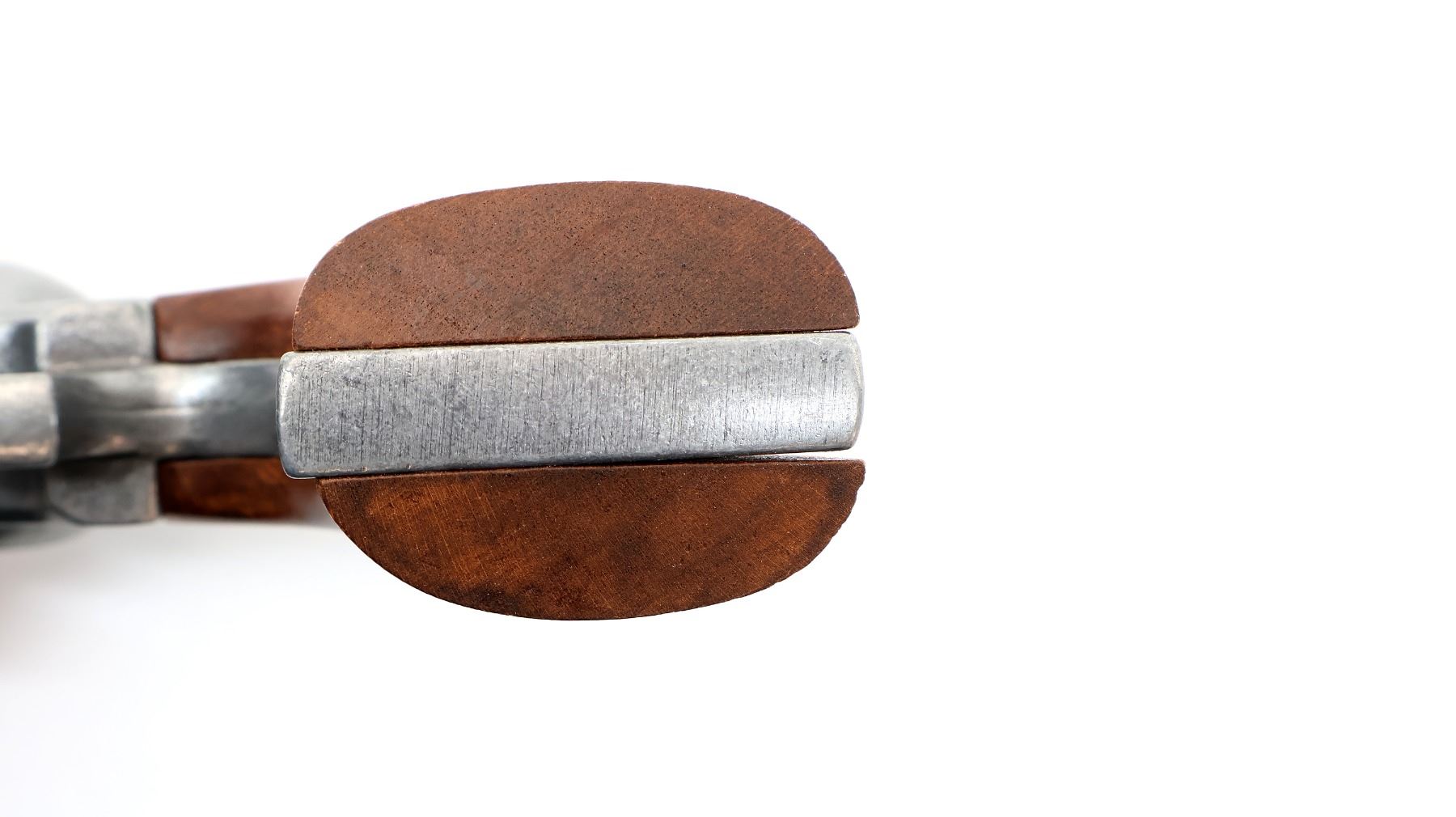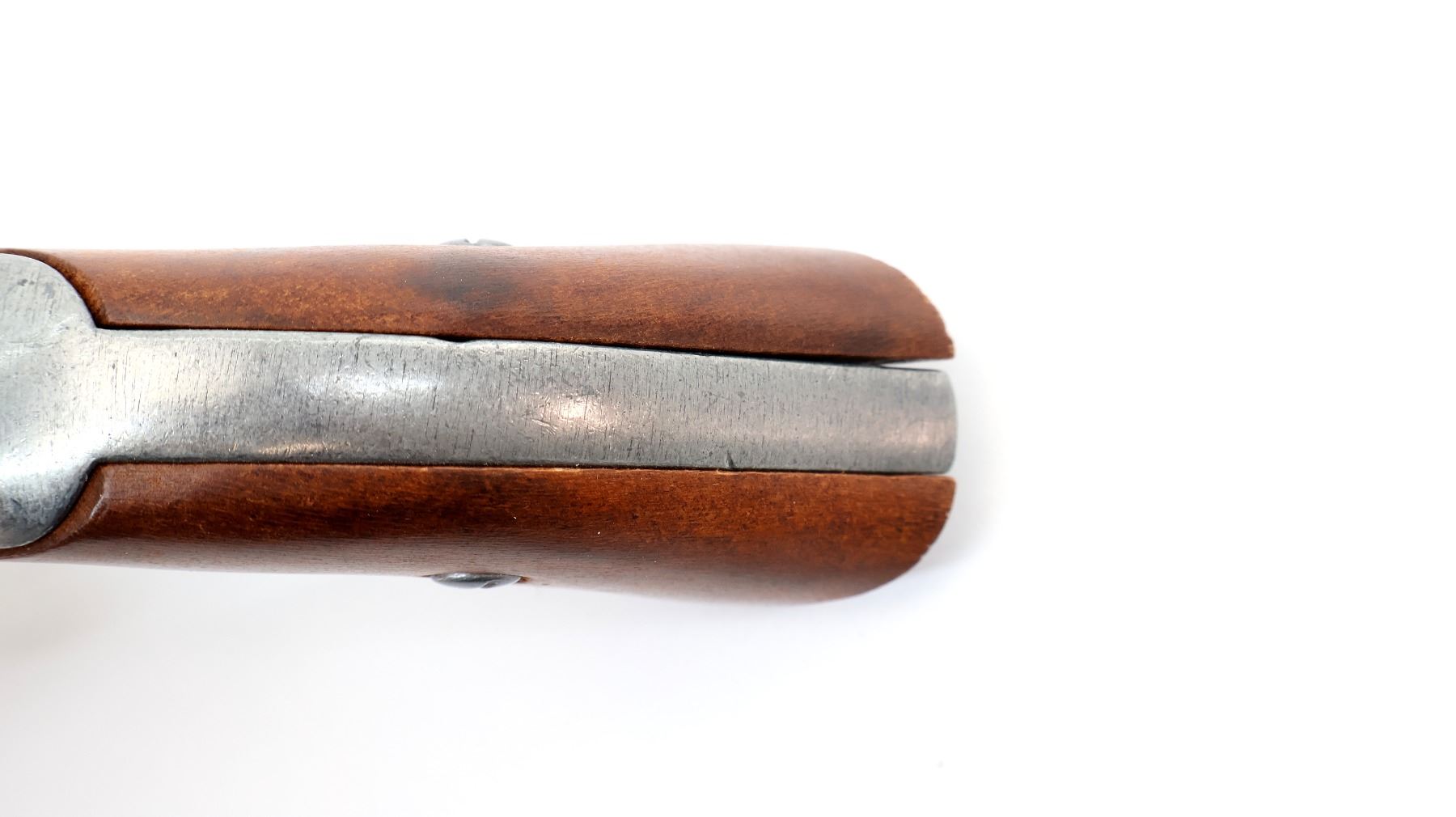 (1) ANTIQUE STYLE BALL & CAP REVOLVER, ALLOY / WOOD CONSTRUCTION, OVERALL LENGTH APPROX. 13.75". SEE PHOTOS.