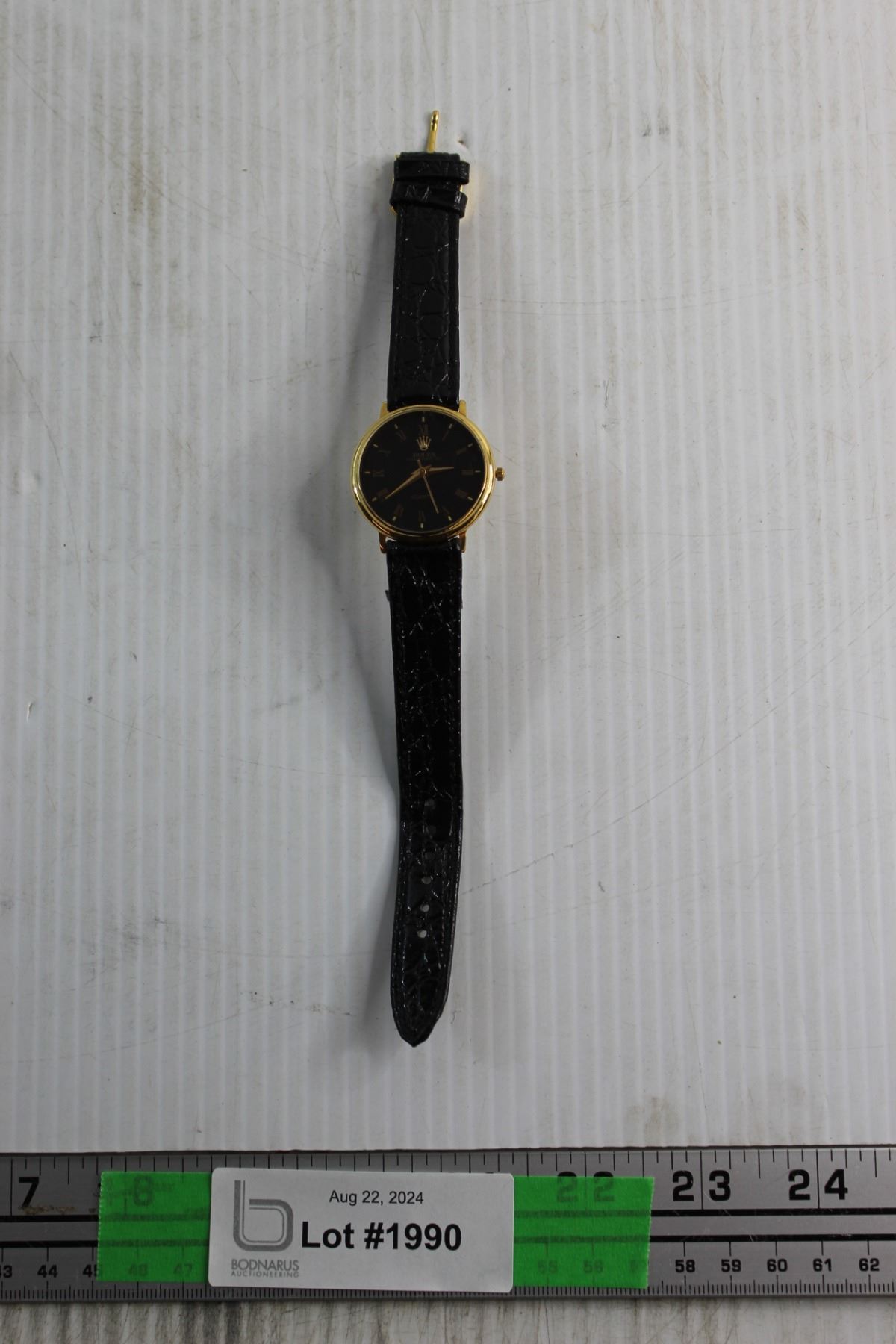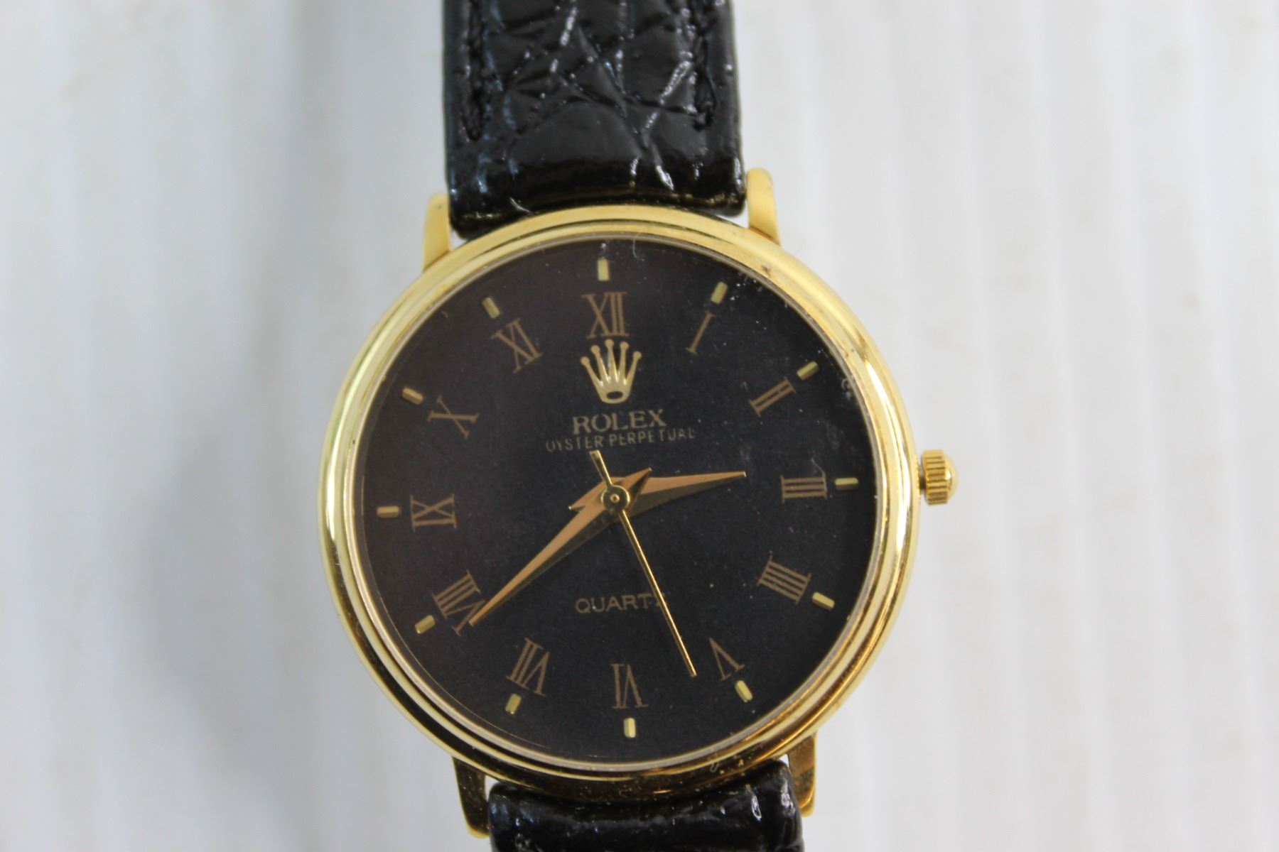 REPLICA Rolex Quartz Watch with Leather Band - Authenticity Not Guaranteed
