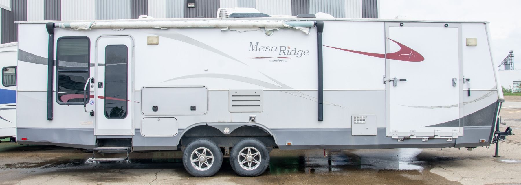 VIN: 5XMTM332332005088 Color: WHITE MESS RIDE SIDE TOY HAULER HARD WALL 289BH TOP-OF-THE-LINE RV TRAILER, POWER AWNING (AWNING IS RIPPED AND WILL NEED REPLACING), FULL LIVING ROOM WITH CHAISE LOUNGE SOFA WITH LIVING ROOM SLIDE OUT, FULL KITCHEN WITH SOLID CABINETS, FULL BATHROOM, THIS UNIT RETAILS FOR $39,000.00. REAR BEDROOM SUITE SLIDE OUT WITH FOLD DOWN BUNKS IN TOY AREA, SPACE FOR HAULING BIKES, EXTRA ITEMS, QUADS AND DIRT BIKES. ALL BIDS SUBJECT TO BANK, BAILIFF, OR OWNERS APPROVAL. MUST BE 18 OR OLDER TO BID OR PURCHASE. ALL VEHICLES ARE SOLD AS IS.