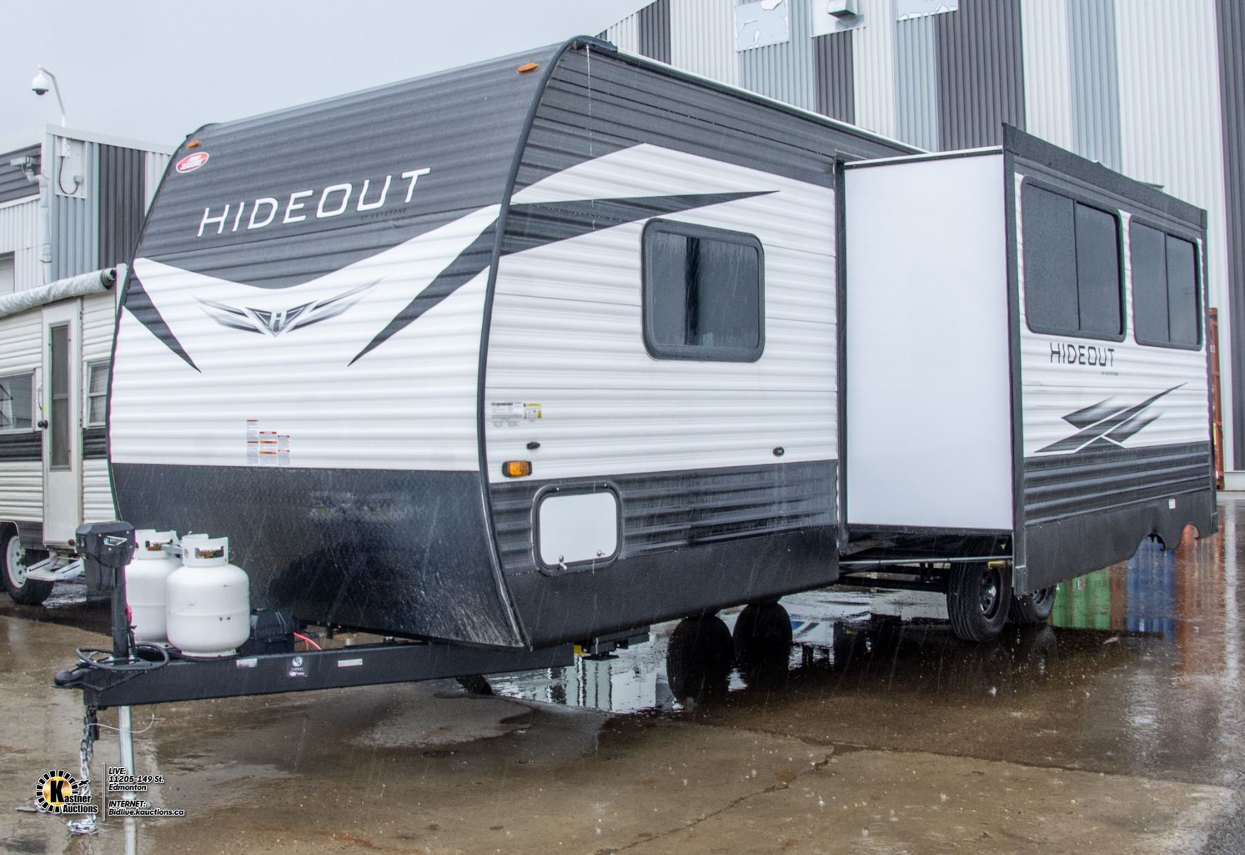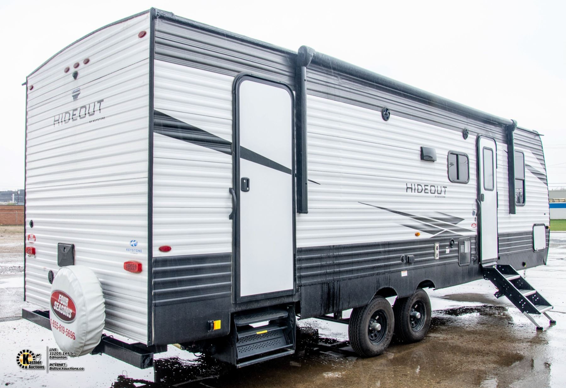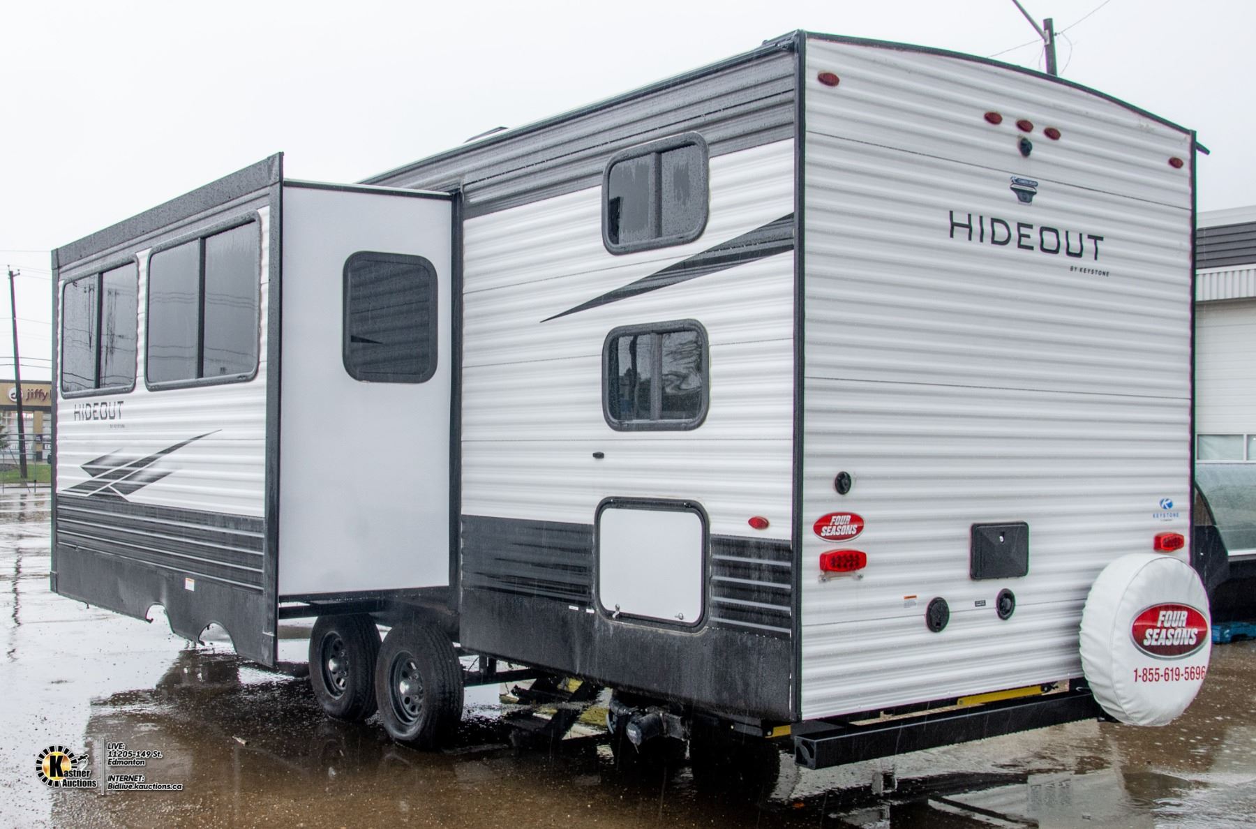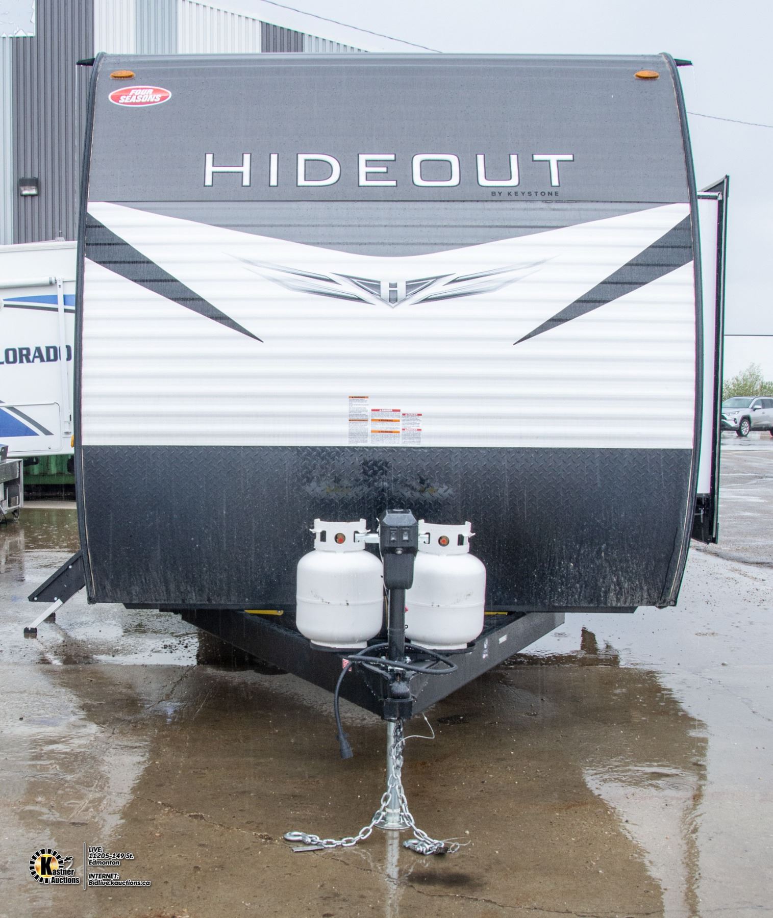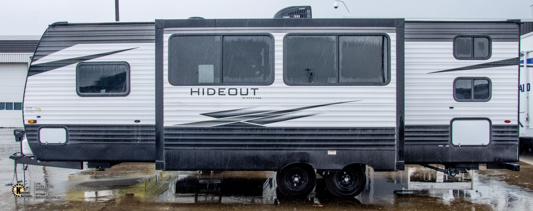 VIN: 4YPT27229M7252127 Color: WHITE REPO 2021 KEYSTONE HIDEOUT BUNK TRAILER, 272BH. THIS TRAILER IS LOADED: BUNK, STAINLESS APPLIANCES, FIRE PLACE, 1 LARGE SLIDE OUT, FULL SEATING KITCHEN, LED, 4-SEASON RV, POWER JACKS, EVEN LED BACK LIT CABINETS, FULL MASTER QUEEN FRONT BED, THIS UNIT RETAILS FOR $49,999.99 AT DEALER. ALL BIDS ARE SUBJECT TO BANK, BAILIFF OR OWNER APPROVAL